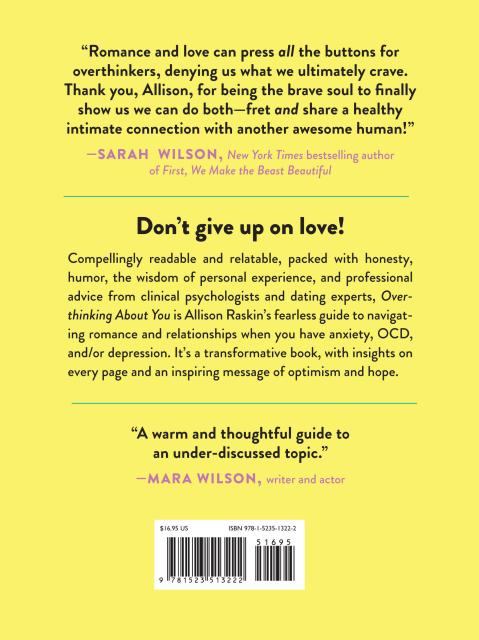 “Romance and love can press all the buttons for overthinkers, denying us what we ultimately crave. Thank you, Allison, for being the brave soul to finally show us we can do both—fret and share a healthy intimate connection with another awesome human!” B>Sarah Wilson, New York Times bestselling author of First, We Make the Beast Beautiful