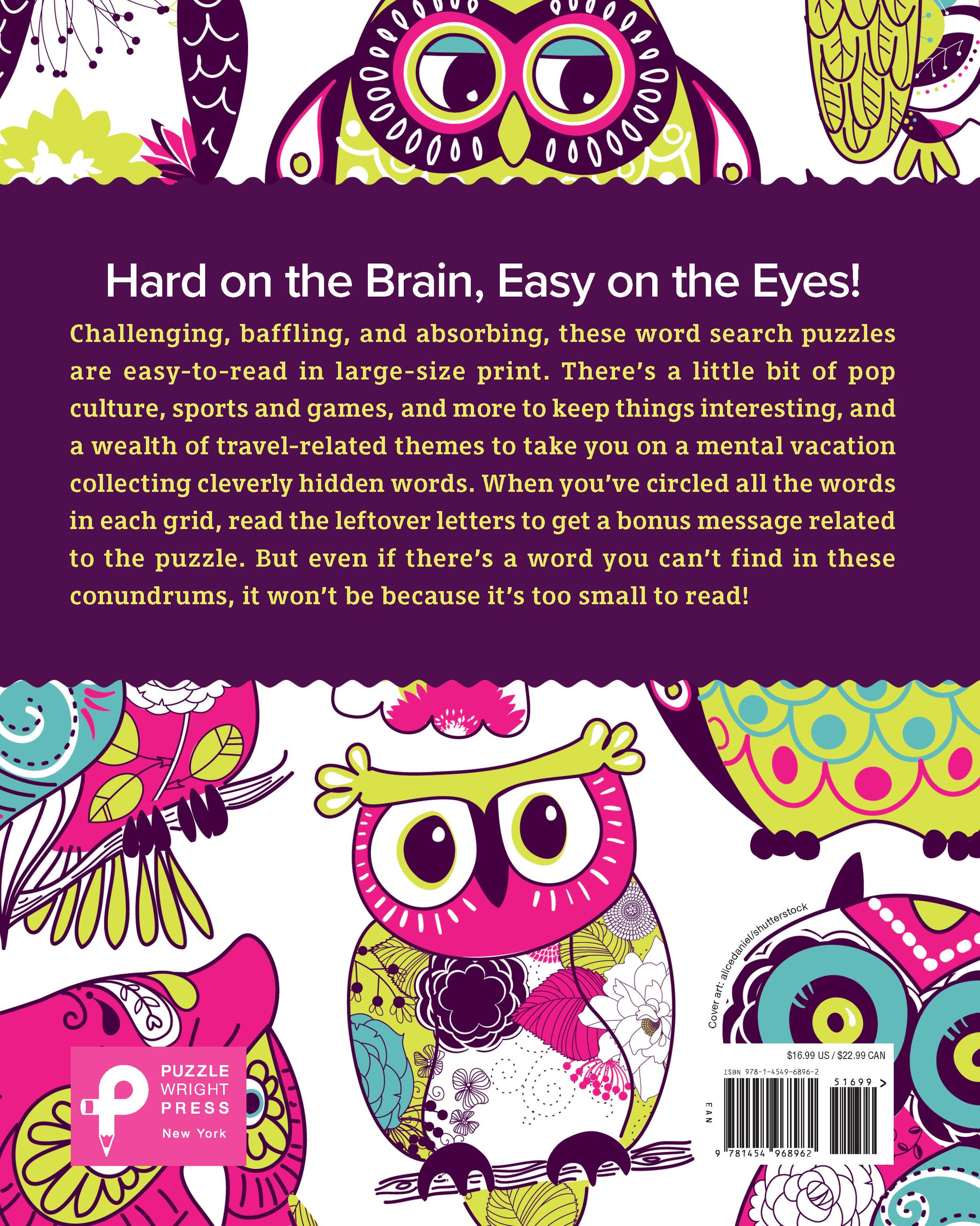 Challenging, baffling, and absorbing, these word search puzzles are easy-to-read in large-size print. There’s a little bit of pop culture, sports and games, and more to keep things interesting, and a wealth of travel-related themes to take you on a mental vacation collecting cleverly hidden words. When you’ve circled all the words in each grid, read the leftover letters to get a bonus message related to the puzzle. But even if there’s a word you can’t find in these conundrums, it won’t be because it’s too small to read!