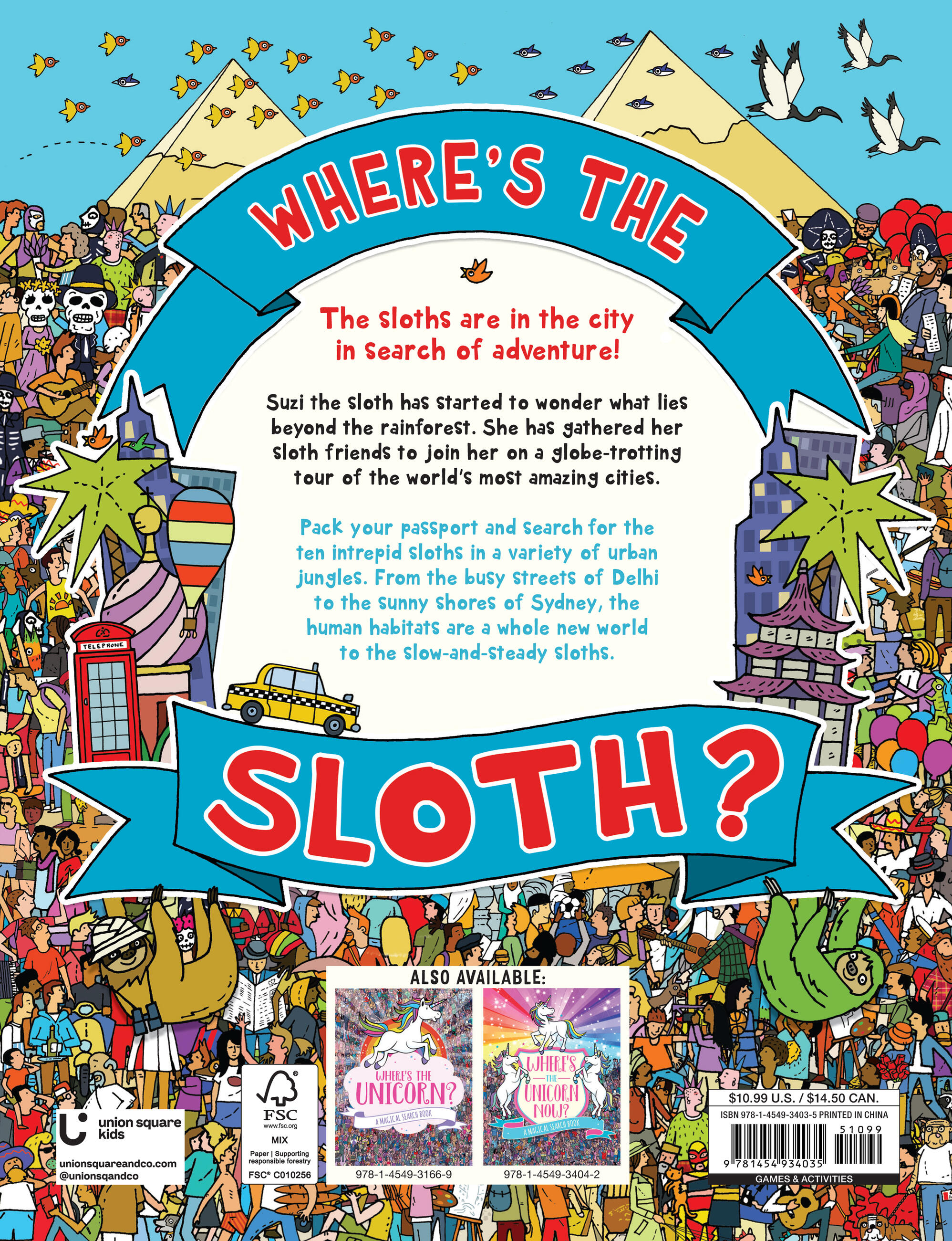 Where, oh where, have all the sloths gone? Out of the rainforest and into the world! Can you find these adorable creatures on every lively, action-packed page?