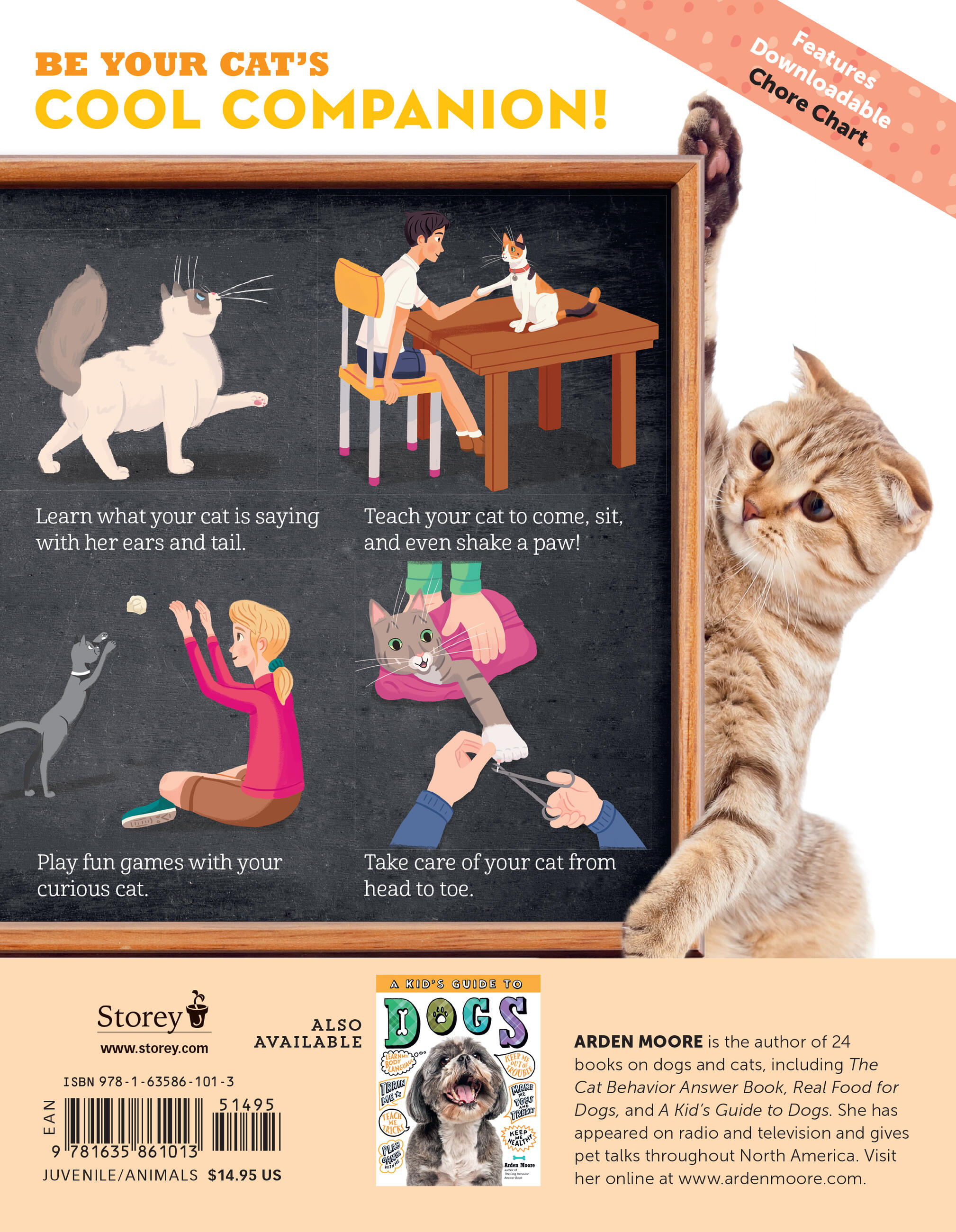 Pet expert Arden Moore helps kids understand how cats think and what they need to be happy and healthy, whether socializing a spunky new kitten or welcoming an adult cat into a household. Along with essentials on topics such as how to read a cat’s body language and proper litter box protocol, fun and fascinating features cover the history of cat-human relationships, why and how cats purr, “ask the vet” Q&As, trivia, DIY cat toys, and even tips for training a cat to come when called (yes, you can!).