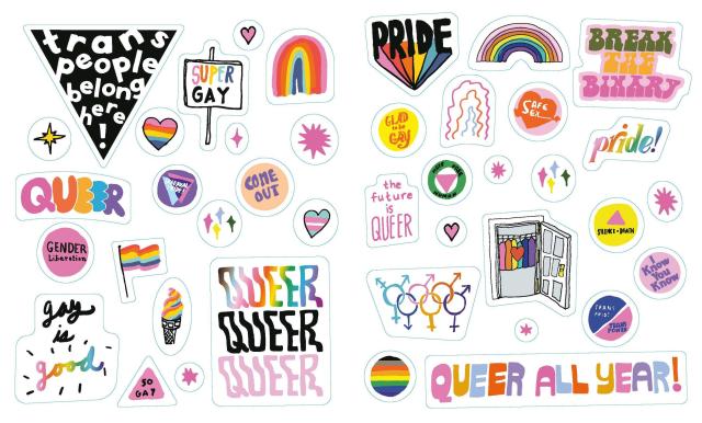 From flags and rainbows to queer slogans (Gay All Day, Queer All Year) and declarations (Protect Trans Kids), you’ll find hundreds of ways to joyfully share LGBTQIA+ pride in The Big Book of Queer Stickers.