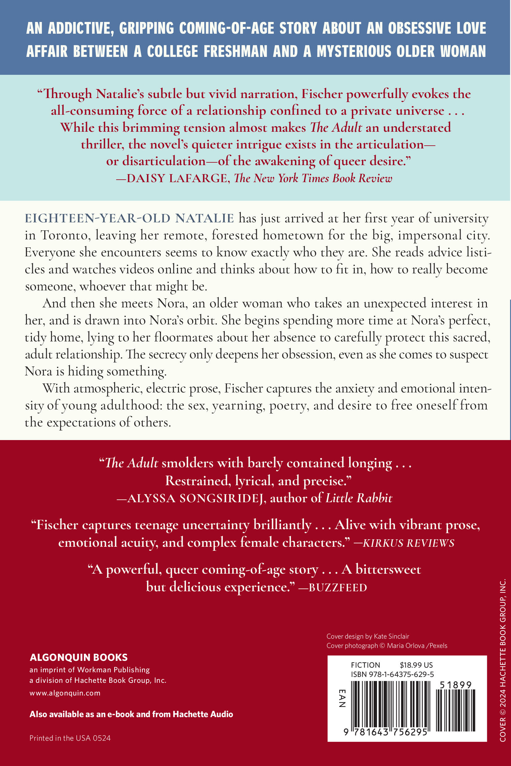 “The Adult smolders with barely contained longing. Natalie’s voice—restrained, lyric, and precise—transported me back to the exquisite desperation of first love. Fischer’s debut novel is like a visit from your younger self—even as you worry about Natalie, you won’t be able to look away.”Alyssa Songsiridej, author of Little Rabbit, shortlisted for the Center for Fiction First Novel Prize