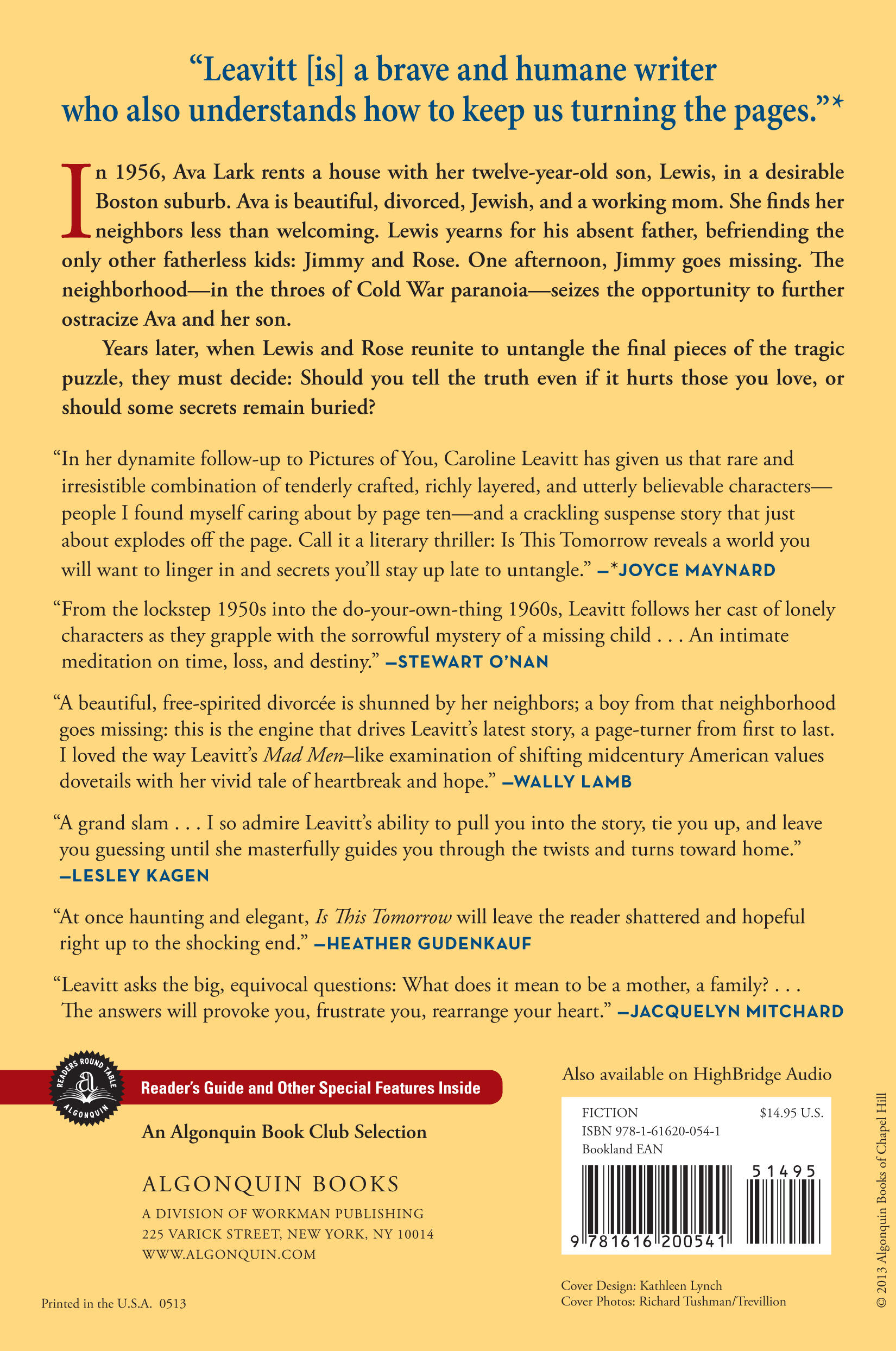 In 1956, Ava Lark rents a house with her twelve-year-old son, Lewis, in a desirable Boston suburb. Ava is beautiful, divorced, Jewish, and a working mom. She finds her neighbors less than welcoming. Lewis yearns for his absent father, befriending the only other fatherless kids: Jimmy and Rose. One afternoon, Jimmy goes missing. The neighborhood—in the throes of Cold War paranoia—seizes the opportunity to further ostracize Ava and her son.