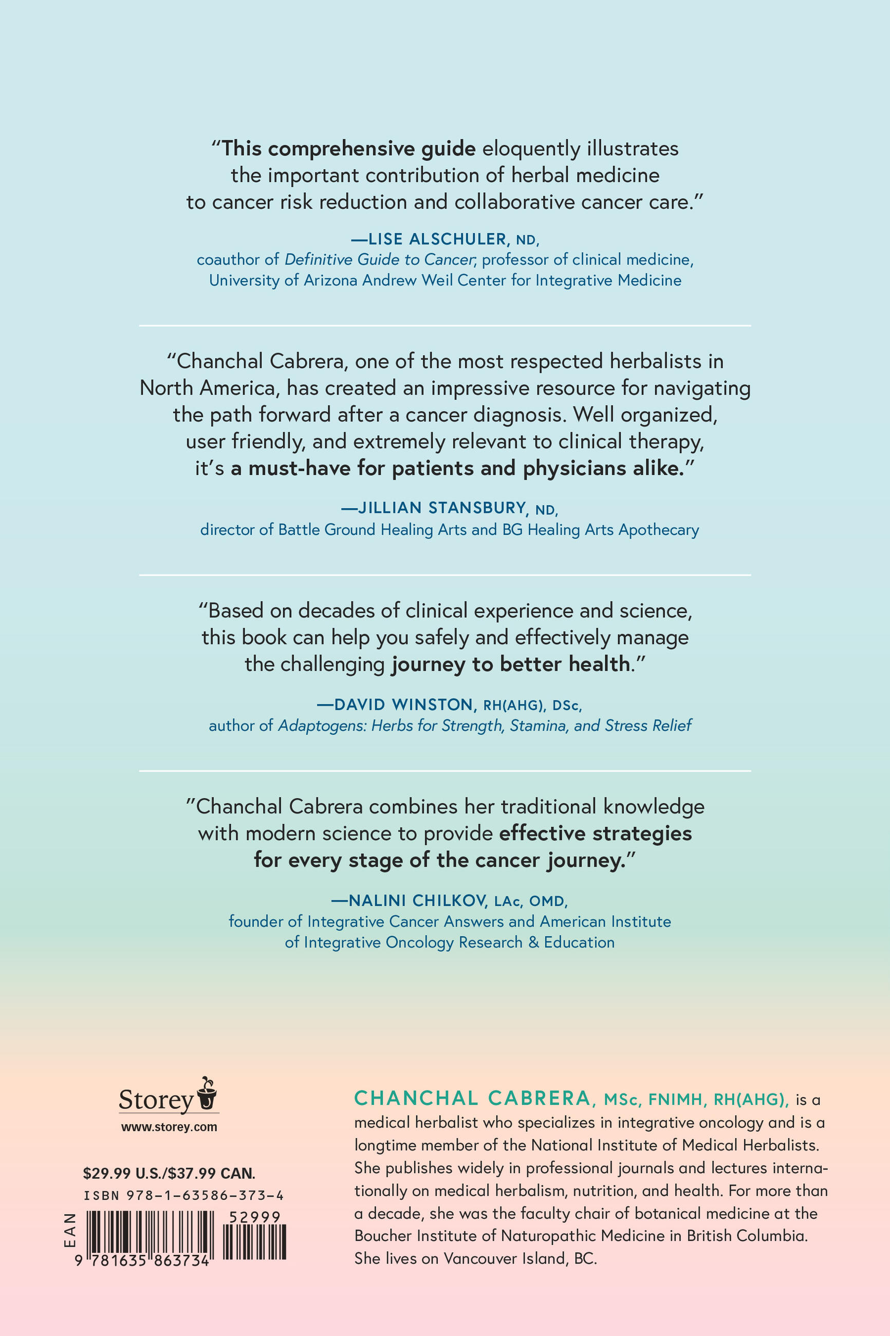 “This comprehensive guide eloquently illustrates the important contribution of herbal medicine to cancer risk reduction and collaborative cancer care.”Lise Alschuler, ND, co-author of Definitive Guide to Cancer and Definitive Guide to Thriving After Cancer, Professor of Clinical Medicine, University of Arizona Andrew Weil Center for Integrative Medicine