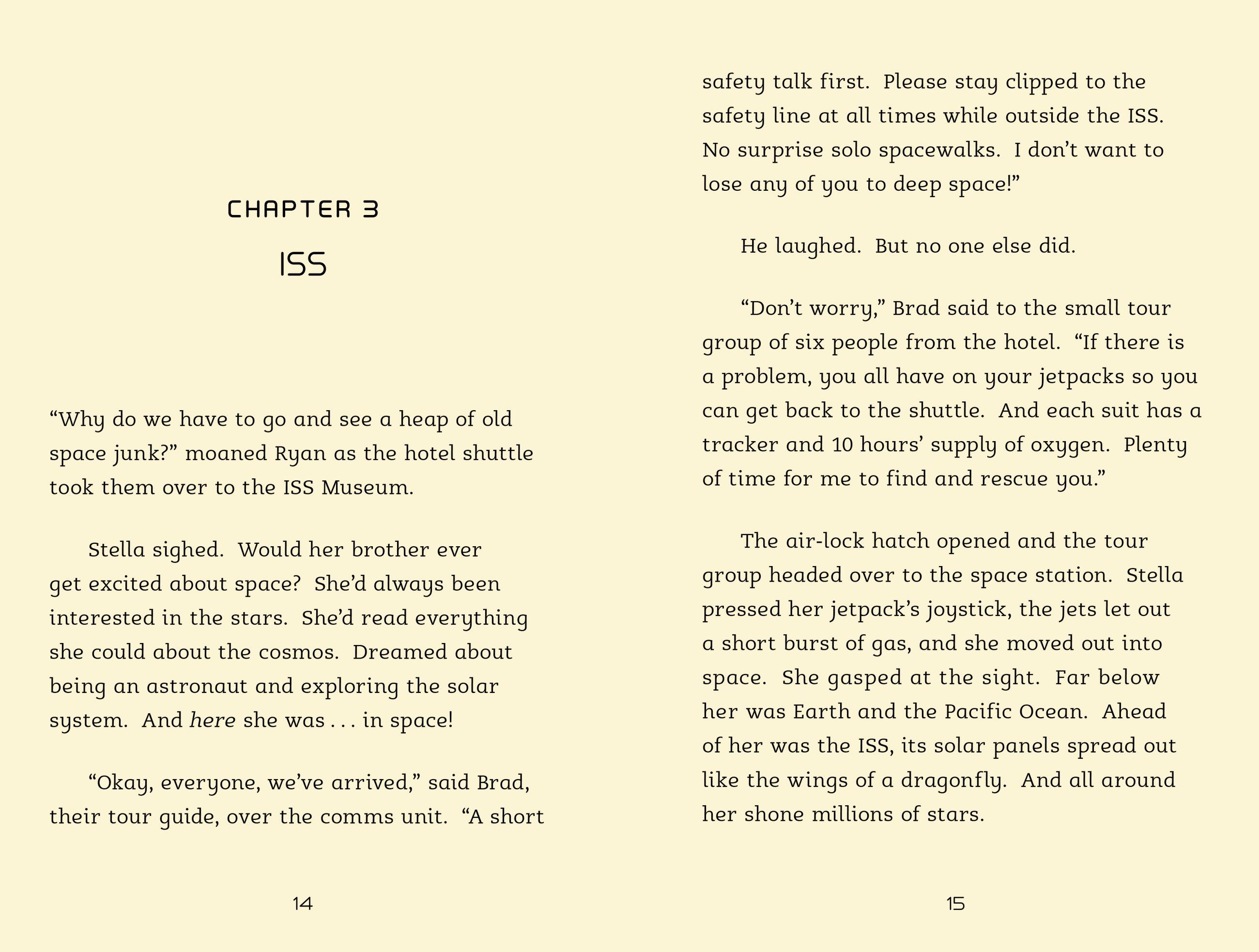 Stella is fascinated by stars, but her brother Ryan is bored with space already. Less than a week into their family vacation on the Space Hotel orbiting Earth, he’s already complaining that there’s nothing to do.