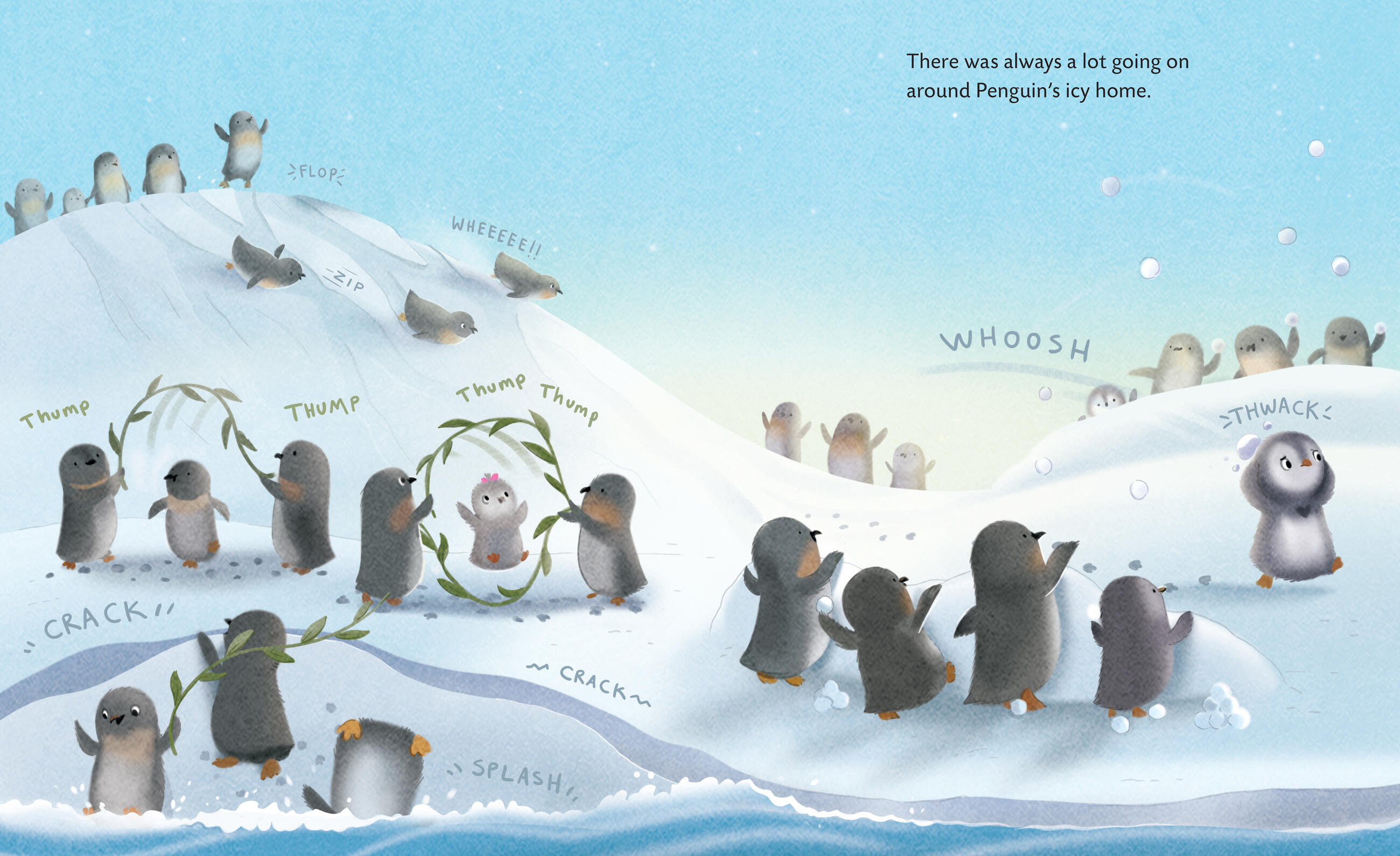Penguin is anxious amidst the hustle and bustle of his busy colony. He wishes to feel calm inside, but he doesn’t know how! Thankfully, a few of his Antarctica friends teach him their strategies for finding inner peace. Before long, Penguin can use his own zen techniques to handle a stressful situation, earning him his new name—Zenguin!