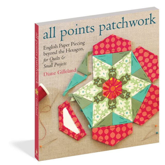 “All Points Patchwork is like an extensive technique manual, a resource to help you dream up thousands of different English paper pieced projects! You probably know all about English paper piecing (EPP) in terms of “hexies,” but Diane’s book teaches you how to do this technique with diamonds, triangles, octagons, pentagons, curved-edge shapes and more. The book features nearly thirty project inspirations, 84 pattern diagrams and over 300 detailed images.” — Sew Mama Sew