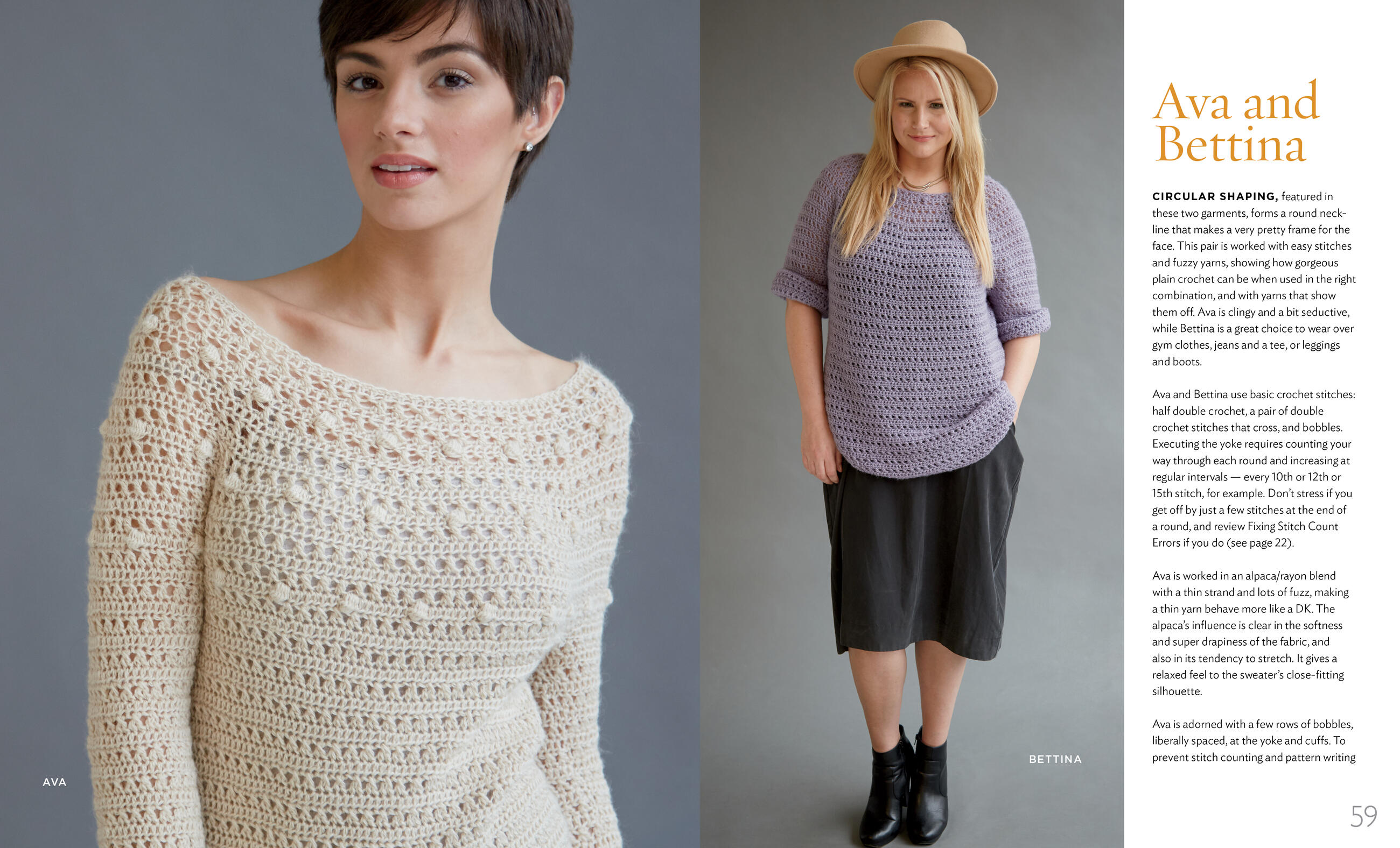"If you've always thought of crocheted sweaters as lumpy, heavy, and unflattering, Dora's book will change your mind in about two minutes flat."
