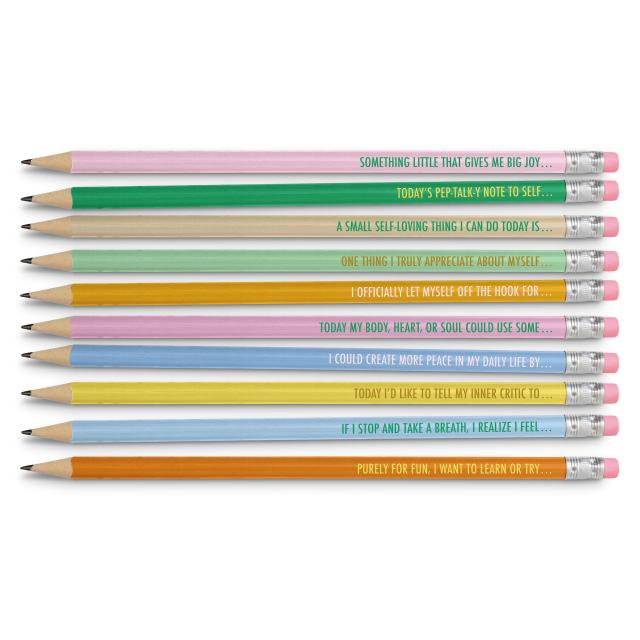 Self-Love, Self-Care and Self-Acceptance Pencil Set, 10 Pencils with Journal Prompts