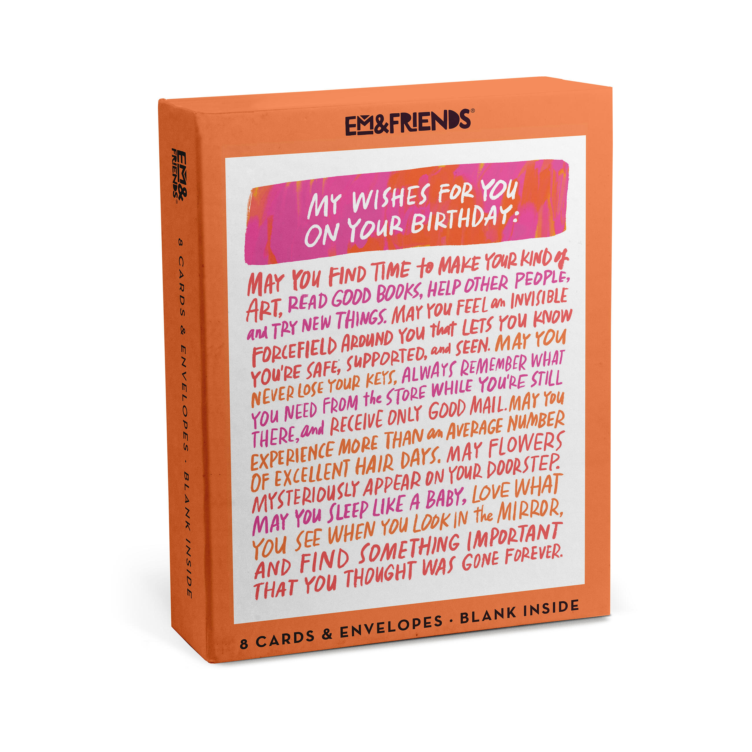 We’ve boxed up 8 of these birthday beauties just for you. Now you’ll always have just the right birthday card on hand, that already says just the right thing.