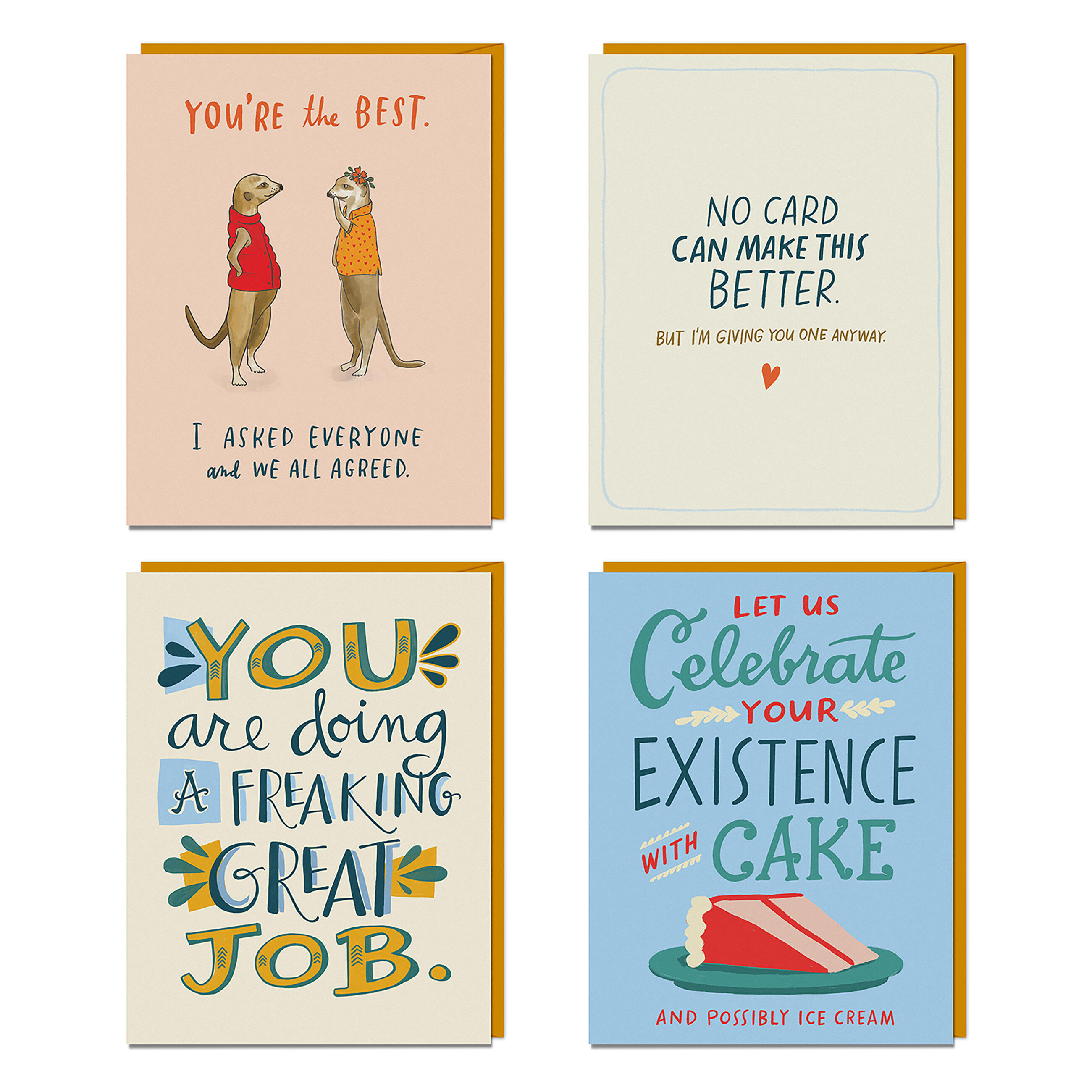 This handy assortment of all-occasion cards is literally like having an Em & Friends card shop in a box. You’ll be all set to send instant support to anyone who needs it, at any time and for any reason (except maybe like a zombie situation?).