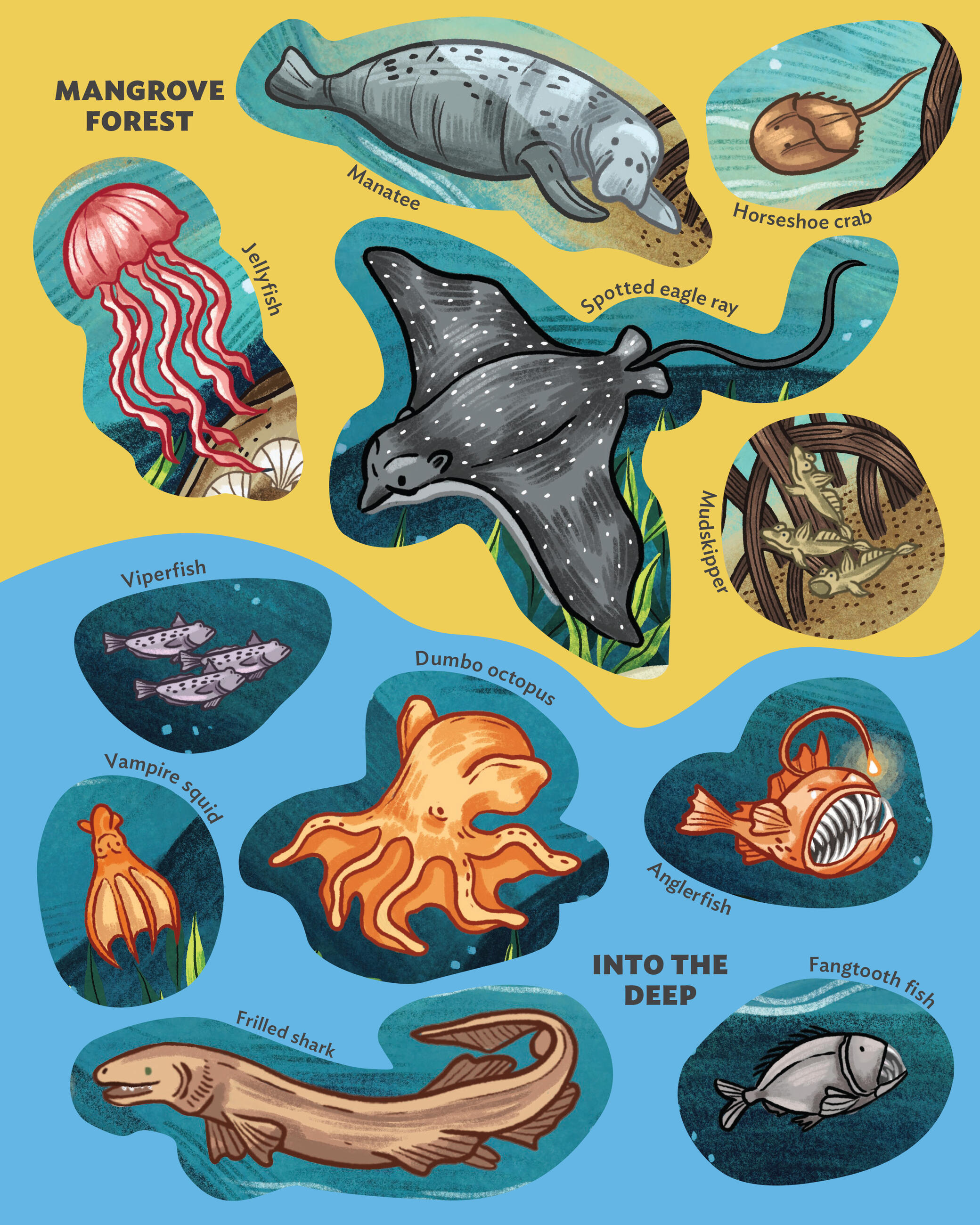 Creatures of the Ocean Sticker Poster