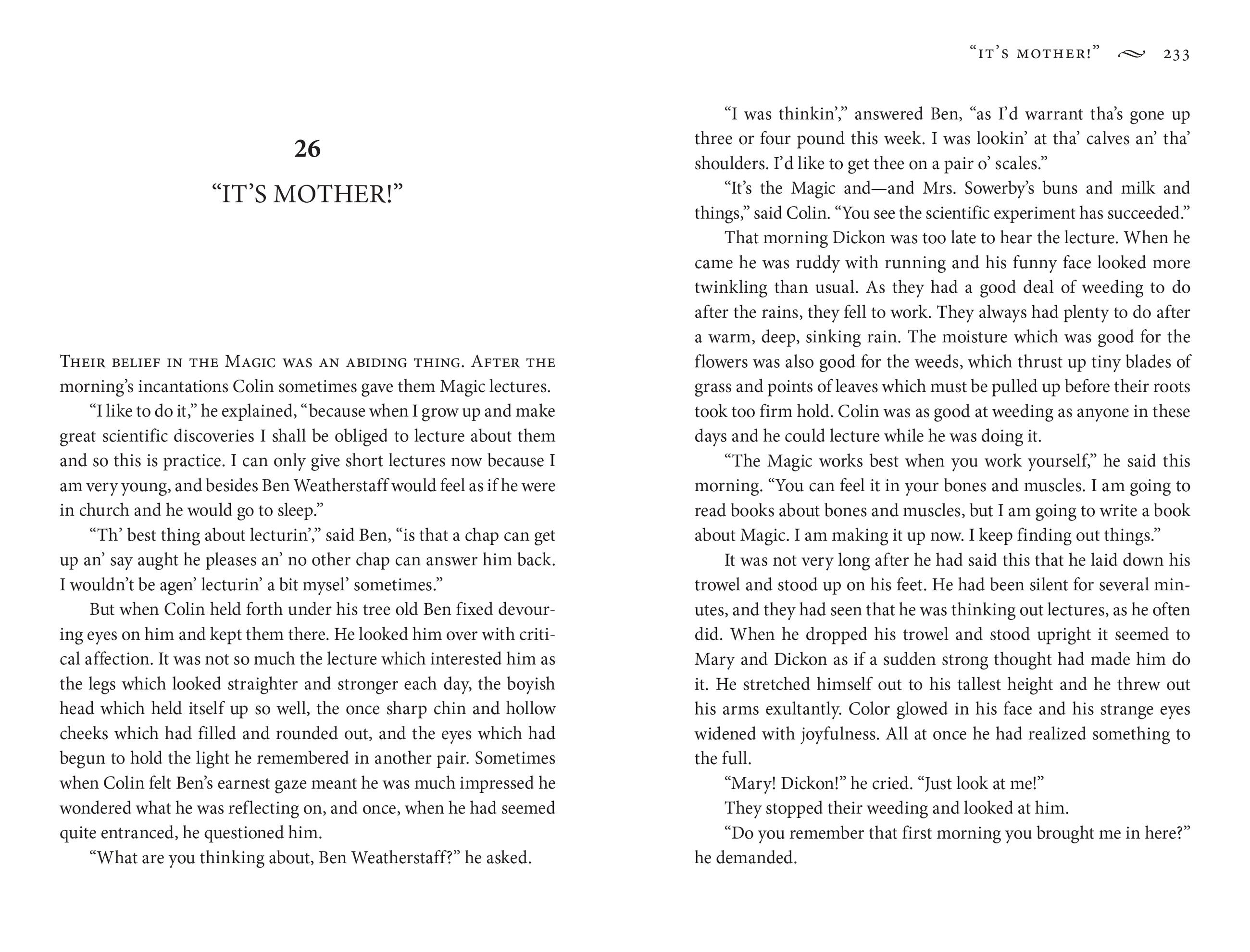 When Mary Lennox begins living with her uncle in the English countryside, she feels bored and lonely. Before long, however, she discovers many mysteries hiding within the walls of the estate. What will it take for Mary to unearth these secrets?