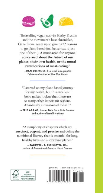 "Gene Stone and Kathy Freston put forth a persuasive argument for a plant-based lifestyle" —USA TodayNEAL D. BARNARD, MD, FACC, founding president of the Physicians Committee for Responsible Medicine and author of Your Body in Balance “If you’ve ever wondered how to convince someone to become vegan, here’s all the evidence and support you’ll ever need in one well-written, easy-to-read book.” —GENE BAUR, cofounder of Farm Sanctuary “I started on my plant-based journey for health reasons, but this excellent book makes it clear that there are so many other important reasons. Absolutely a must-read for all!” —ERIC ADAMS, former New York State Senator and author of Healthy at Last “Just the right inspiration for anyone seeking smart, positively impactful life.” —BRIAN WENDEL, choices founder of Forks Over Knives “Stone and Freston have brilliantly researched the most compelling reasons to be vegan, and they've made it a thoroughly enjoyable read!” —INGRID NEWKIRK, president and cofounder of PETA “A symphony of chapters which are succinct, cogent, and precise and define the nutritional literacy that is essential for long, healthy lives and a forgiving planet.” —CALDWELL B. ESSELSTYN, JR., M.D., author of Prevent and Reverse Heart Disease