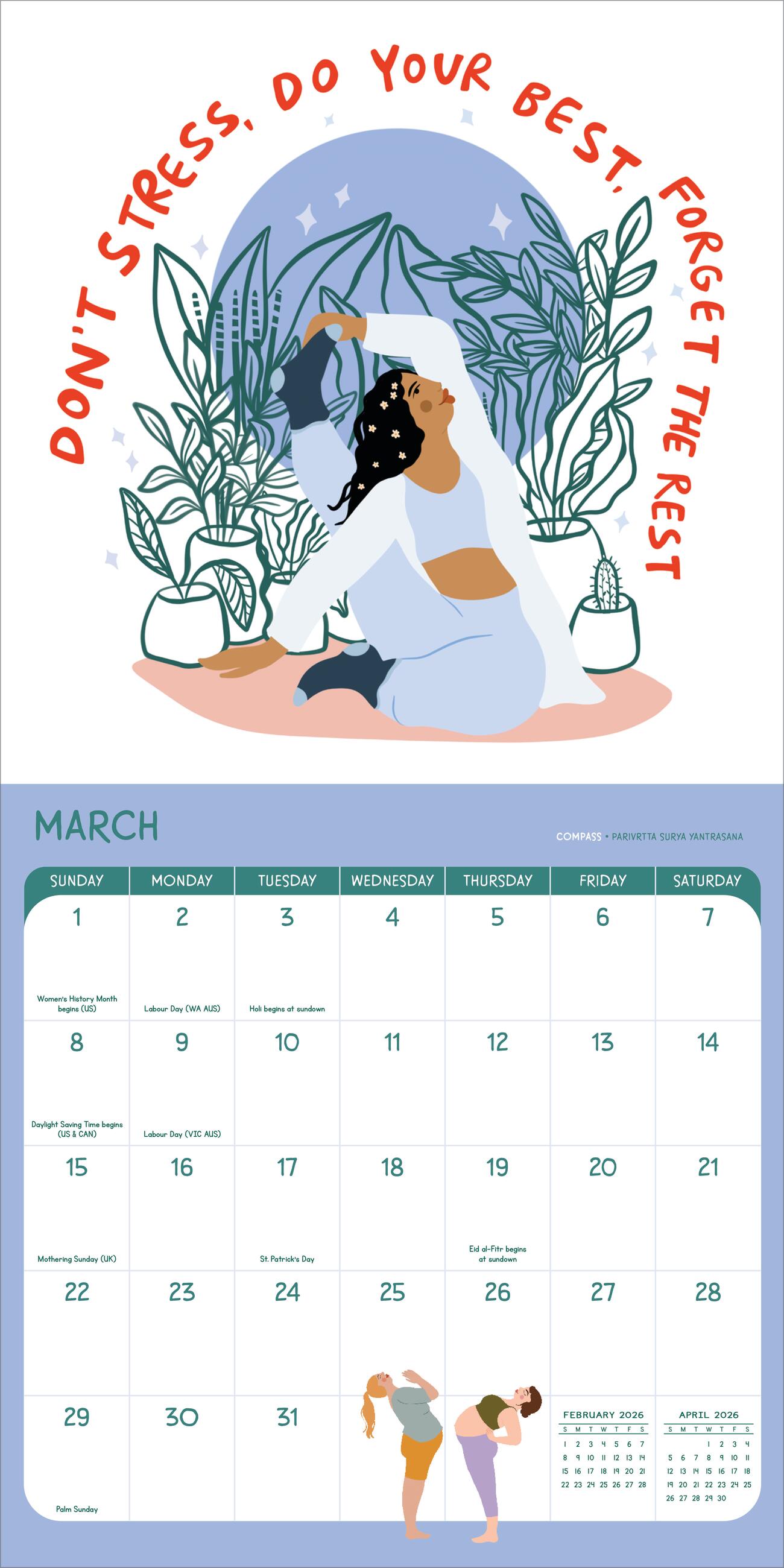 Yoga Is My Happy Place Wall Calendar 2026