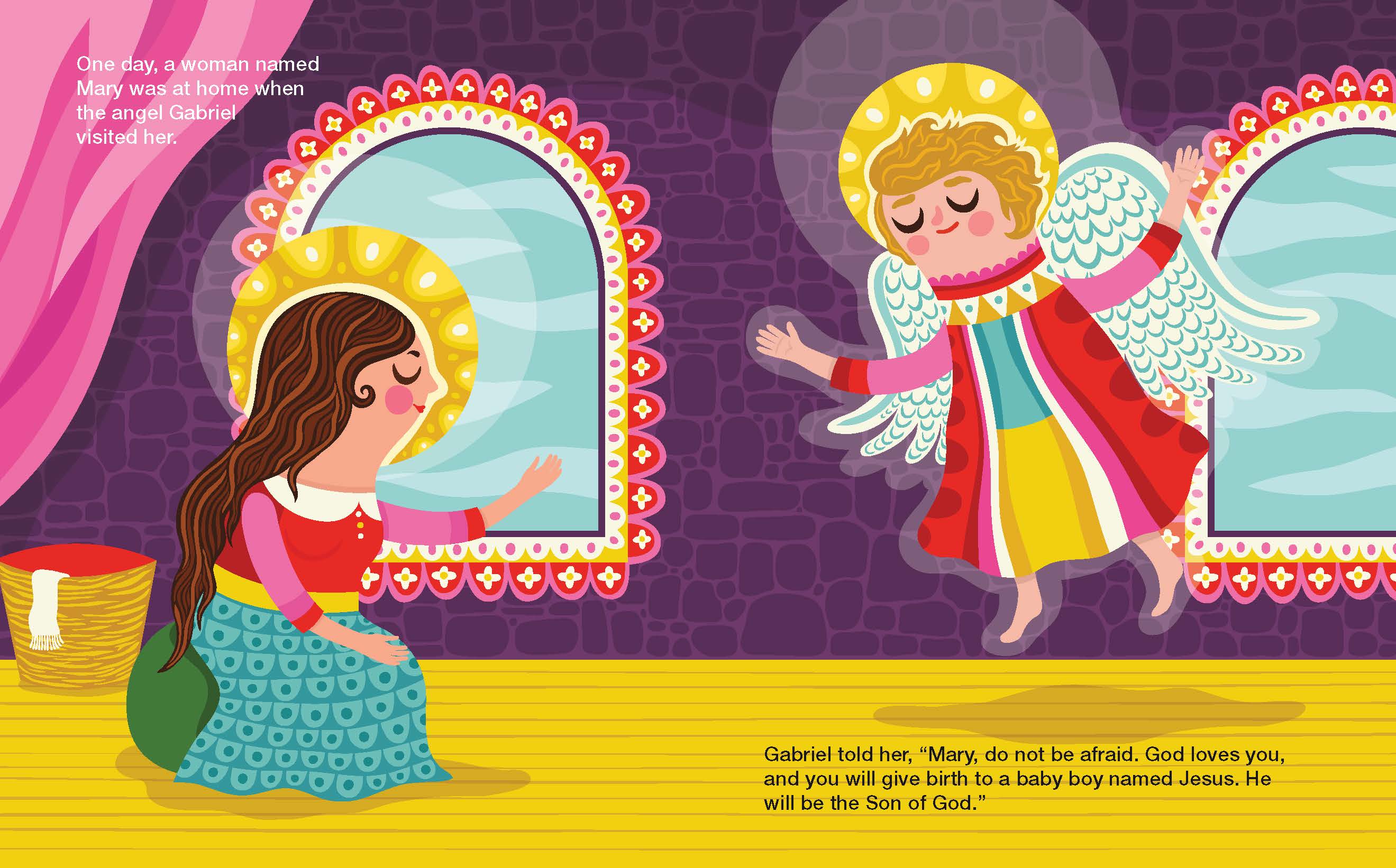 A long time ago, in the town of Nazareth, there lived a young woman named Mary. One day, an angel appeared before her and told her that she would give birth to a baby. The baby would be the Son of God, and she would name him Jesus.