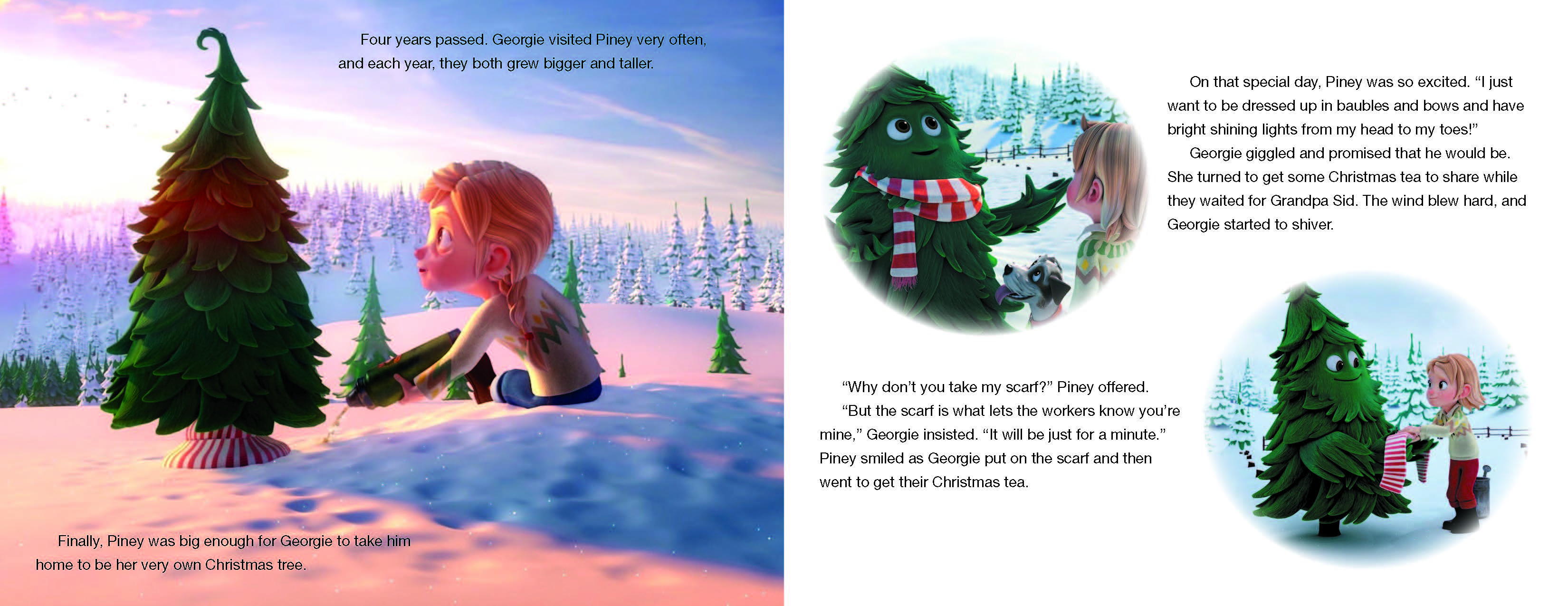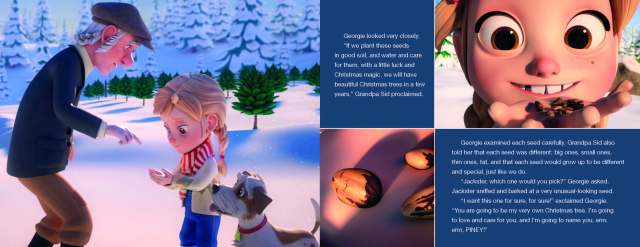 Piney the Pine Tree has only ever wanted to be one thing: a special Christmas tree for a little girl named Georgie who planted him as a seed on her Grandpa Sid’s Christmas tree farm. Finally, the winter arrives when Piney is ready to make his dream come true, but he is accidentally loaded onto a truck and whisked away from the tree farm! Thus begins Piney’s adventure to find Georgie’s house and to become her Christmas tree.