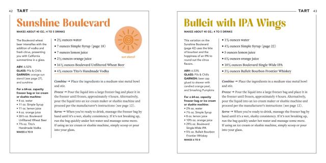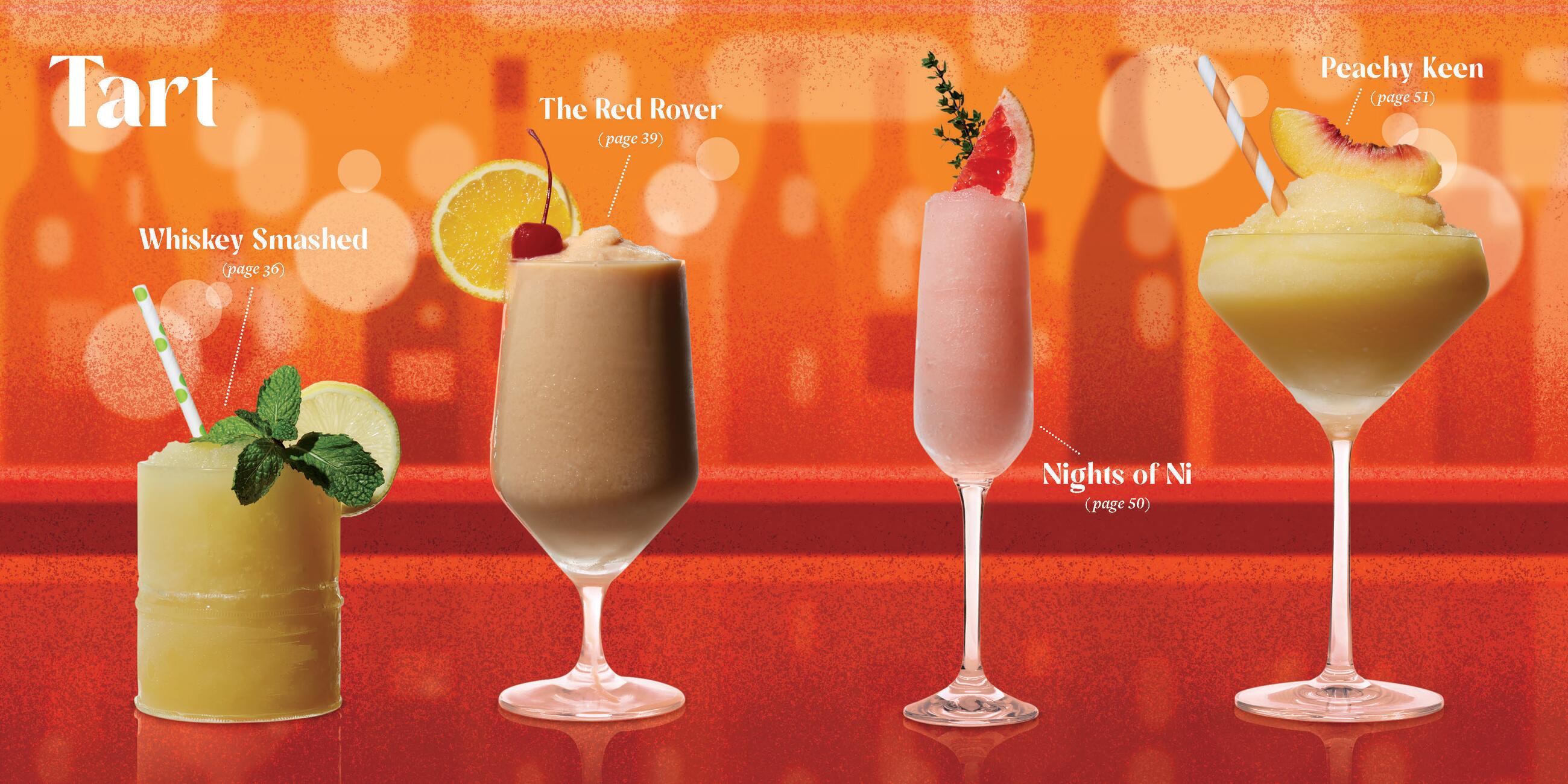 There’s something here for everyone. Choose from TART, SWEET, SPICED, or FLORAL and concoct something utterly delicious and totally refreshing. Chill like Prince with Purple Rain (p.83), sweet raspberry liqueur and blueberry moonshine mingle in frozen perfection. You shall not pass (up) on Gandalf’s Staff (p.141), a frozen IPA and elderflower liqueur shandy to shire with friends. And take flight with The Wintergreen Fairy (p.117), mint simple syrup, Aperol, and absinthe flutter on your tastebuds.