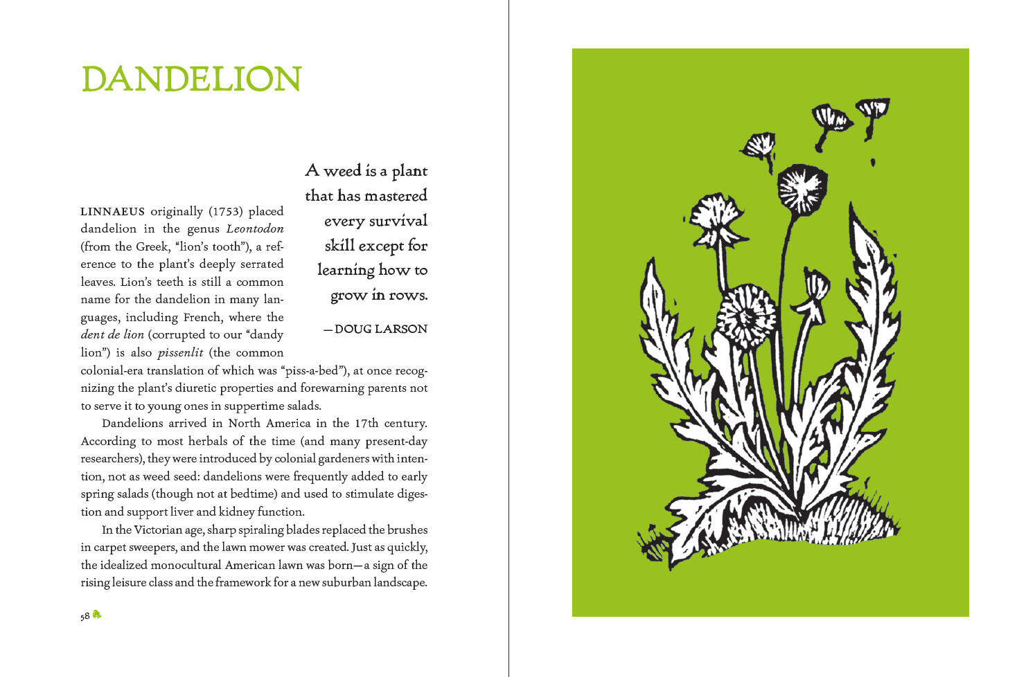 “Forti aims to encourage people to connect with the land and plants, providing inspiration through his experiences and reflections. Forti’s work as a historical gardener informs his approach, which is enhanced by the beautiful wood block print artwork that accompanies each essay and illustrates key ideas throughout the book.” —Booklist