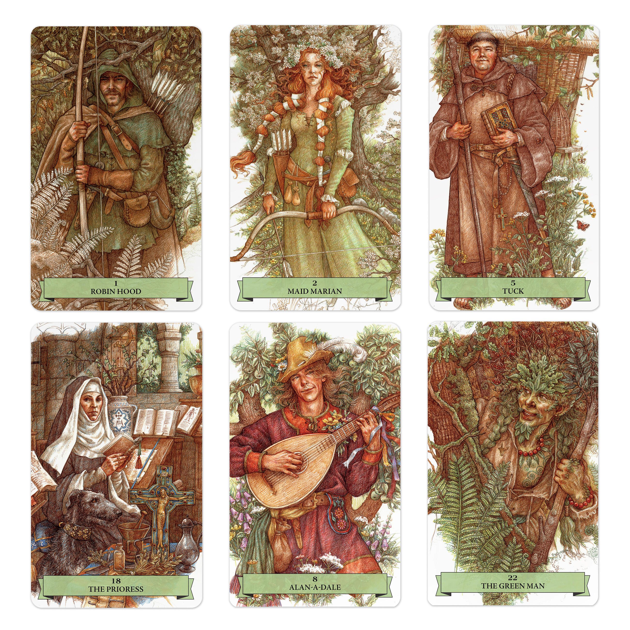 The lore behind the figures Robin Hood and the Merry Men are some of the most enduring of all myths and legends, and their paths affect everyone who reads about them. This is a deck that breathes life into the forests of Sherwood, where romance, heroism, and the supernatural occur in equal parts, and questions about the most archetypal characteristics found in the human psyche can be answered. Written by the creators of the bestselling The Wildwood Tarot—including Mark Ryan, who starred in the cult-favorite TV series Robin of Sherwood—and illustrated by iconic artist Anne Yvonne Gilbert, this is an enchanting and enlightening tool for uncovering the legends hidden in the human subconscious.