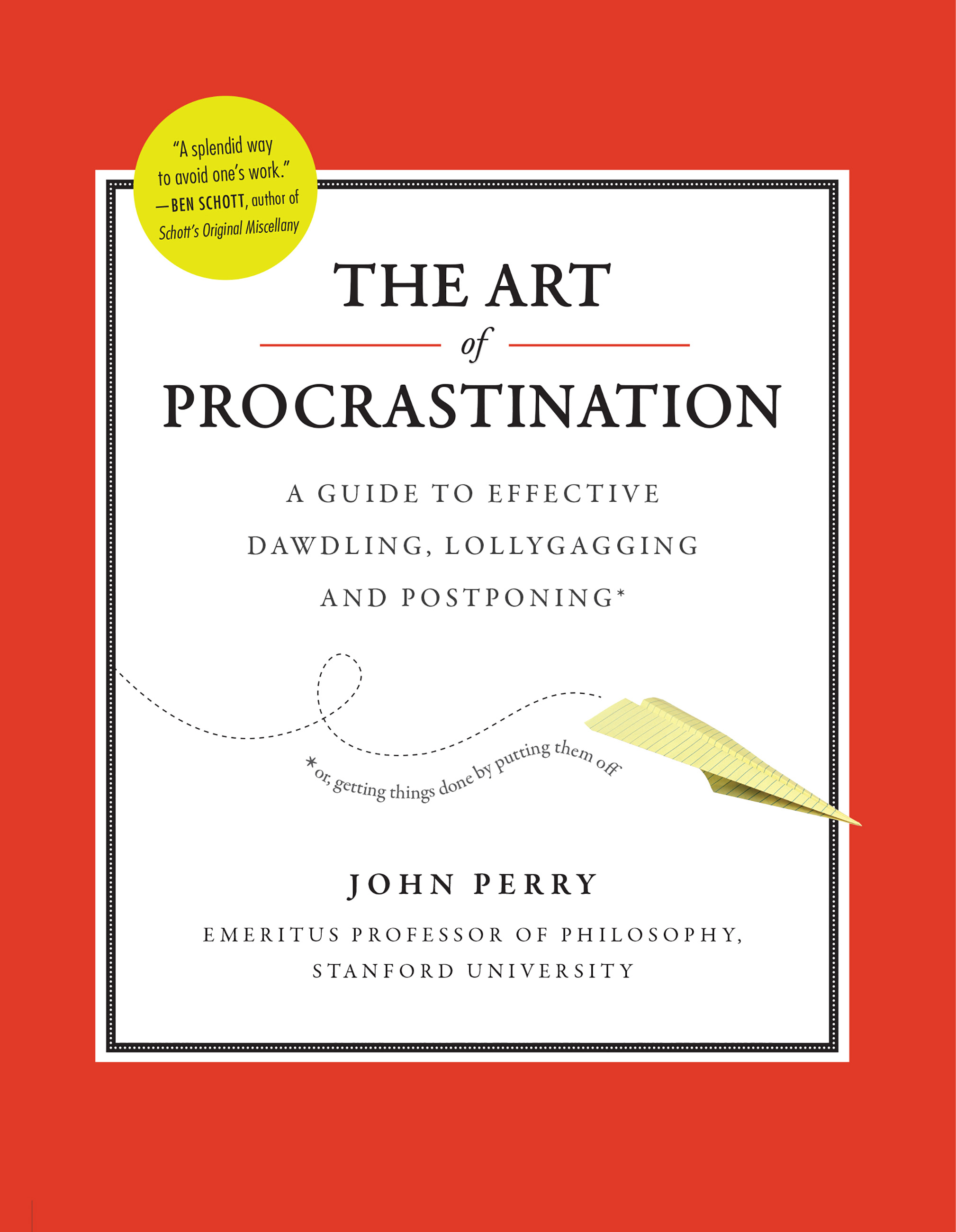 “Do not put off reading this charming guide to more effective procrastination. Dr. Perry is the Fabius Cunctator in our war against the Hannibal of the undone. Be gone, elephants of nagging duty.