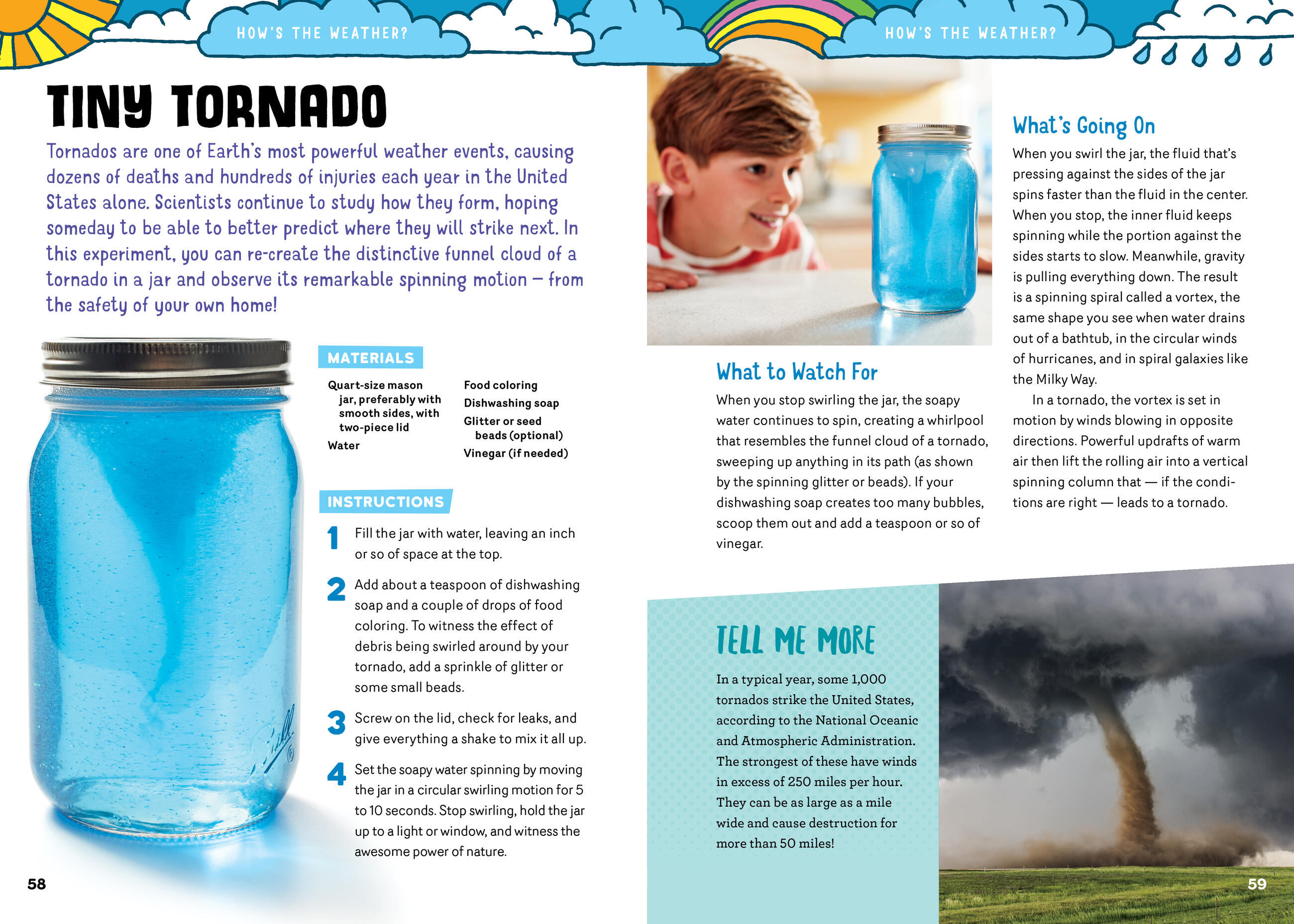 Heatproof, transparent, and durable, the mason jar is a science lab just waiting to be discovered. Unlock its potential with 40 dynamic experiments for budding scientists ages 8 and up. Using just a jar and a few ordinary household items, children learn to create miniature clouds, tiny tornadoes, small stalactites, and, of course, great goo and super slime! With a little ingenuity, the jar can be converted into a lava lamp, a water prism, a balloon barometer, and a compass. Each fun-packed project offers small-scale ways to illustrate the big-picture principles of chemistry, botany, biology, physics, and more.