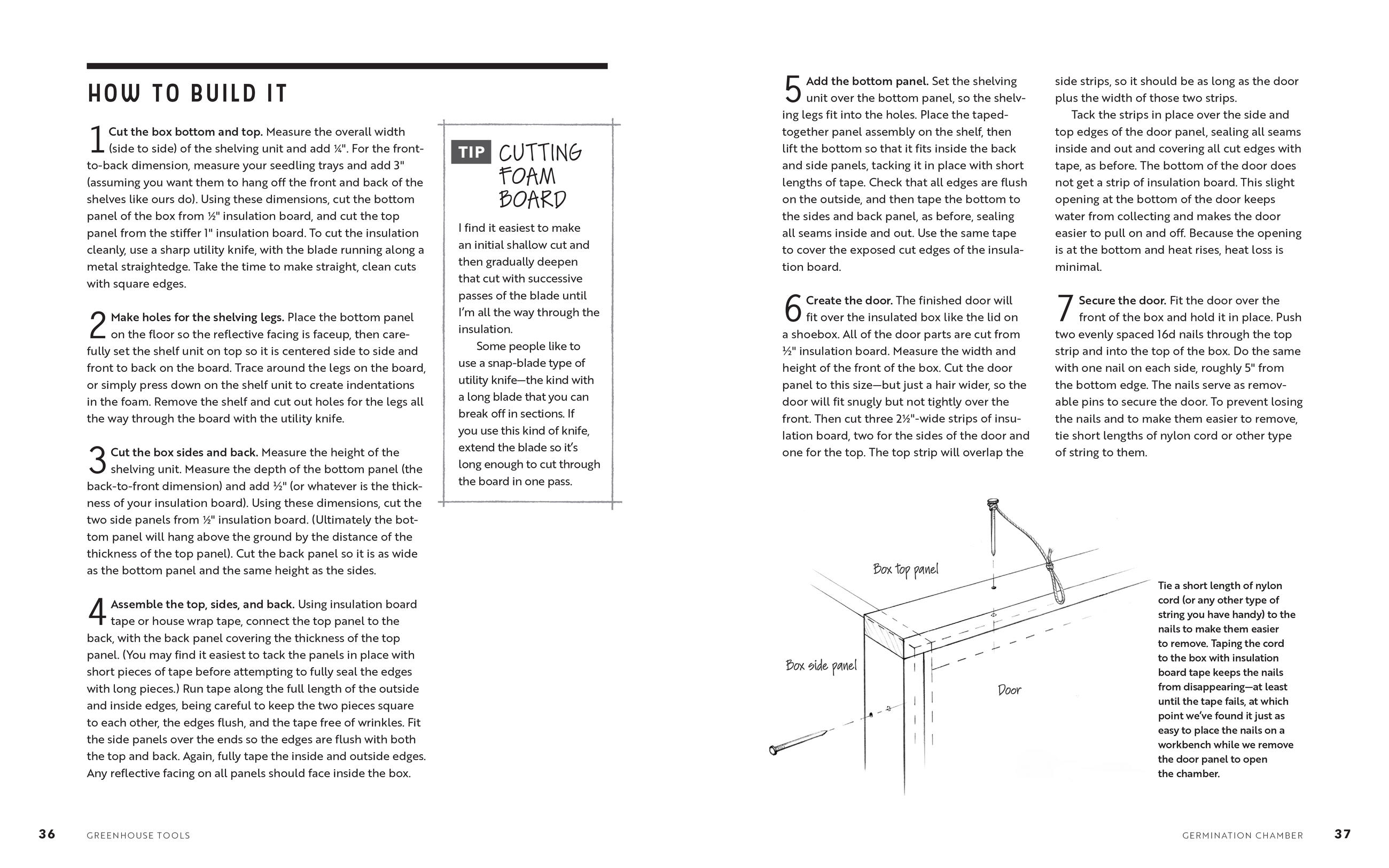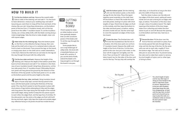 Volk begins with the basics, such as setting up a workshop and understanding design principles, mechanical principles, and materials properties, then presents plans for making 15 tools suited to small-farm tasks and processes. Each project includes an explanation of the tool’s purpose and use, as well as the time commitment, skill level, and equipment required to build it. Projects range from the super-simple (requiring a half-day to build) to the more complex, and include how-to photographs and illustrations with variations for customizing the finished implement. Along with instructions for building items such as simple seedling benches, a mini barrel washer, a DIY germination chamber, and a rolling pack table, Volk addresses systems design for farm efficiency, including how to design an effective drip irrigation system and how to set up spreadsheets for collecting important planning, planting, and market data.