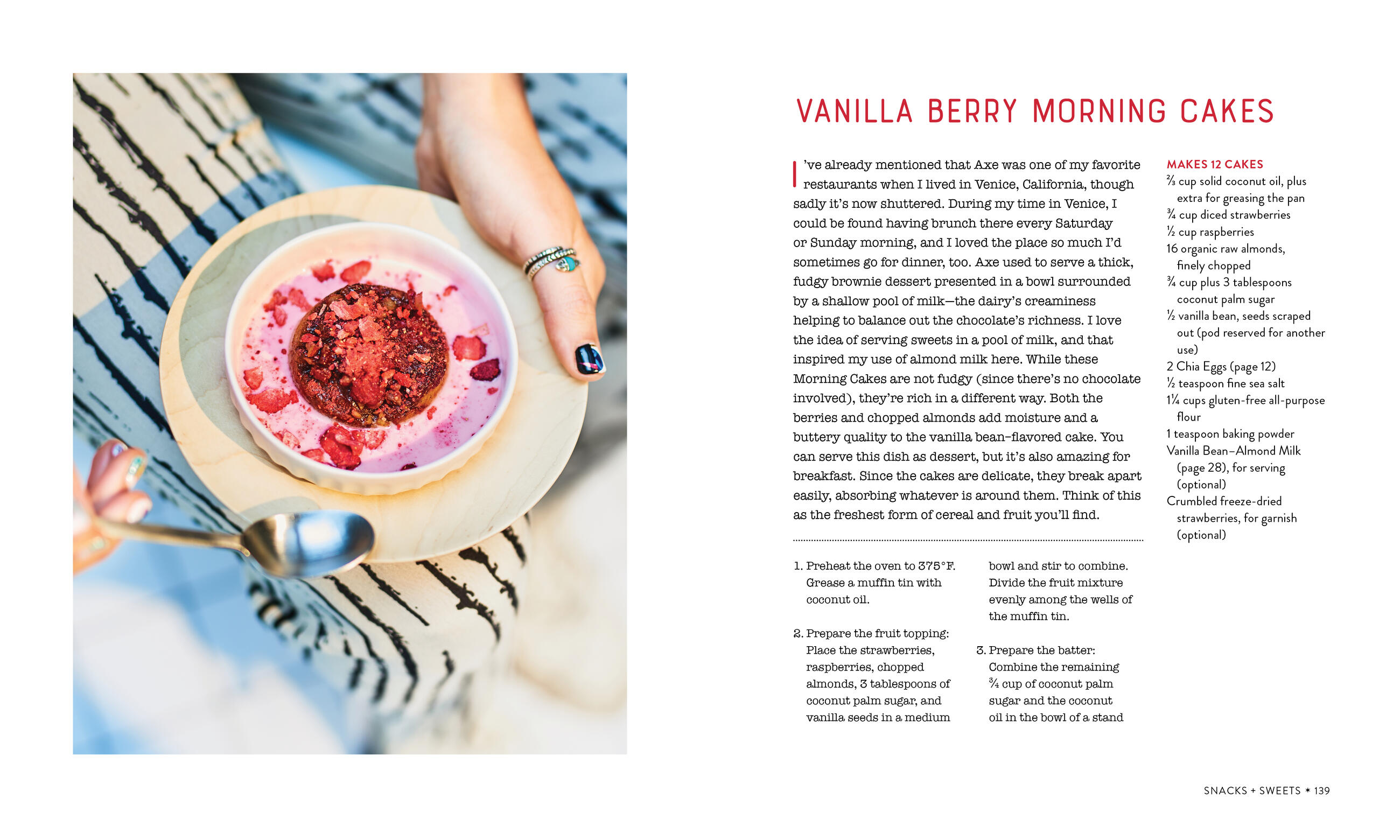The ingredients are all natural and nutrient packed, ranging from fresh fruits and vegetables to superfoods like flax seeds, coconut oil, spirulina, chia, and bee pollen. And the hyper-colorful, creative recipes are perfect for healthy-forward eaters, including gently flavored nut milks, grain bowls loaded with fresh vegetables, probiotic breakfast custards, toasts with slathers and spreads. This is health food filled with joy, and in all the colors of the rainbow: the deep glowing yellow of a Frozen Turmeric Lassi, the greens of Bean Thread Noodle Salad with Miso-Arugula Pesto, the intense oranges and purples of Sweet + Sour Rainbow Radish Tacos, the tie-dye rainbow effect of Pineapple Kimchi Summer Sunset Rolls, and the pastels of Strawberry-Pink Peppercorn “Ice Cream” Sticks.