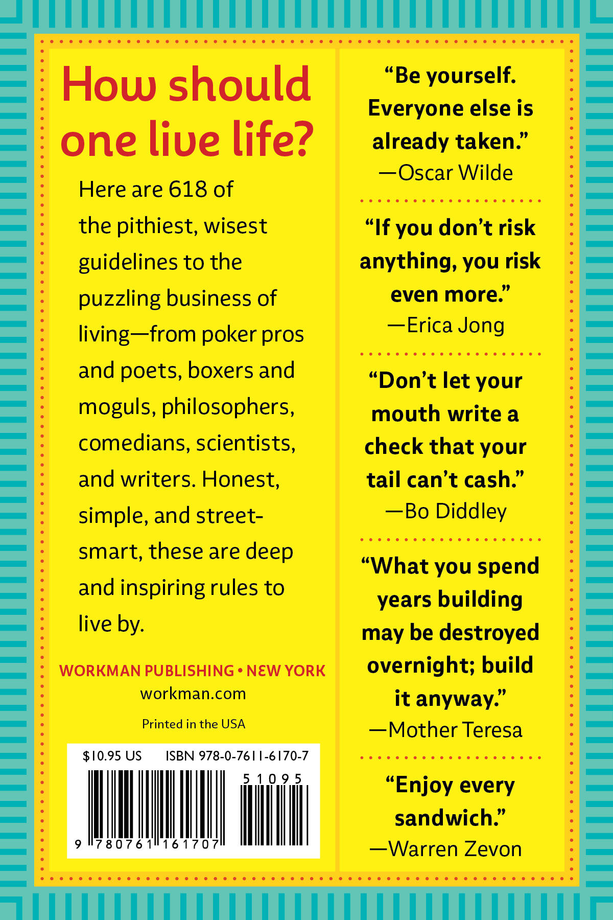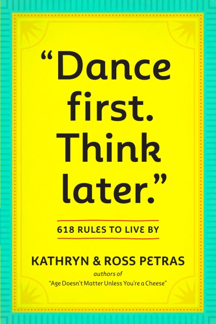 Created by Kathryn and Ross Petras, connoisseurs of quotes, whose books and calendars have over 56 million copies in print, “Dance First. Think Later.” is a collection of the greatest life wisdom from an unexpected group of speakers, doers, and thinkers. There are 618 rules to live by—funny, sly, declarative, thoughtful, offhanded, clever, and always profound: