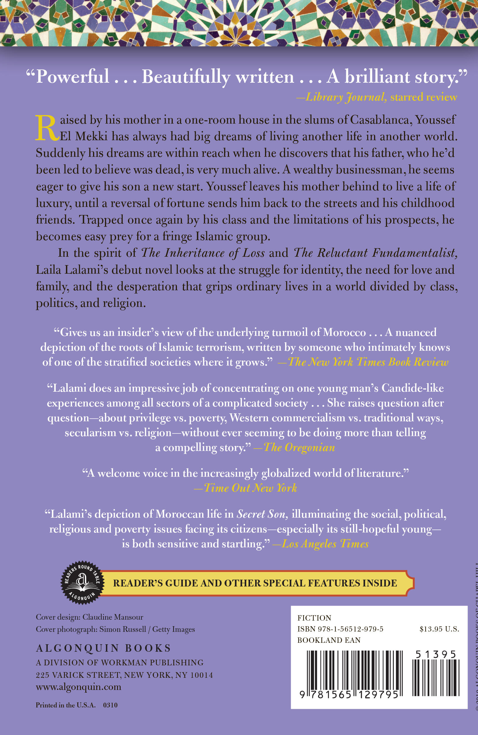 "Lalami's depiction of Moroccan life in Secret Son, illuminating the social, political, religious and poverty issues facing its citizen—especially its still-hopeful young—is both sensitive and startling."Los Angeles Times