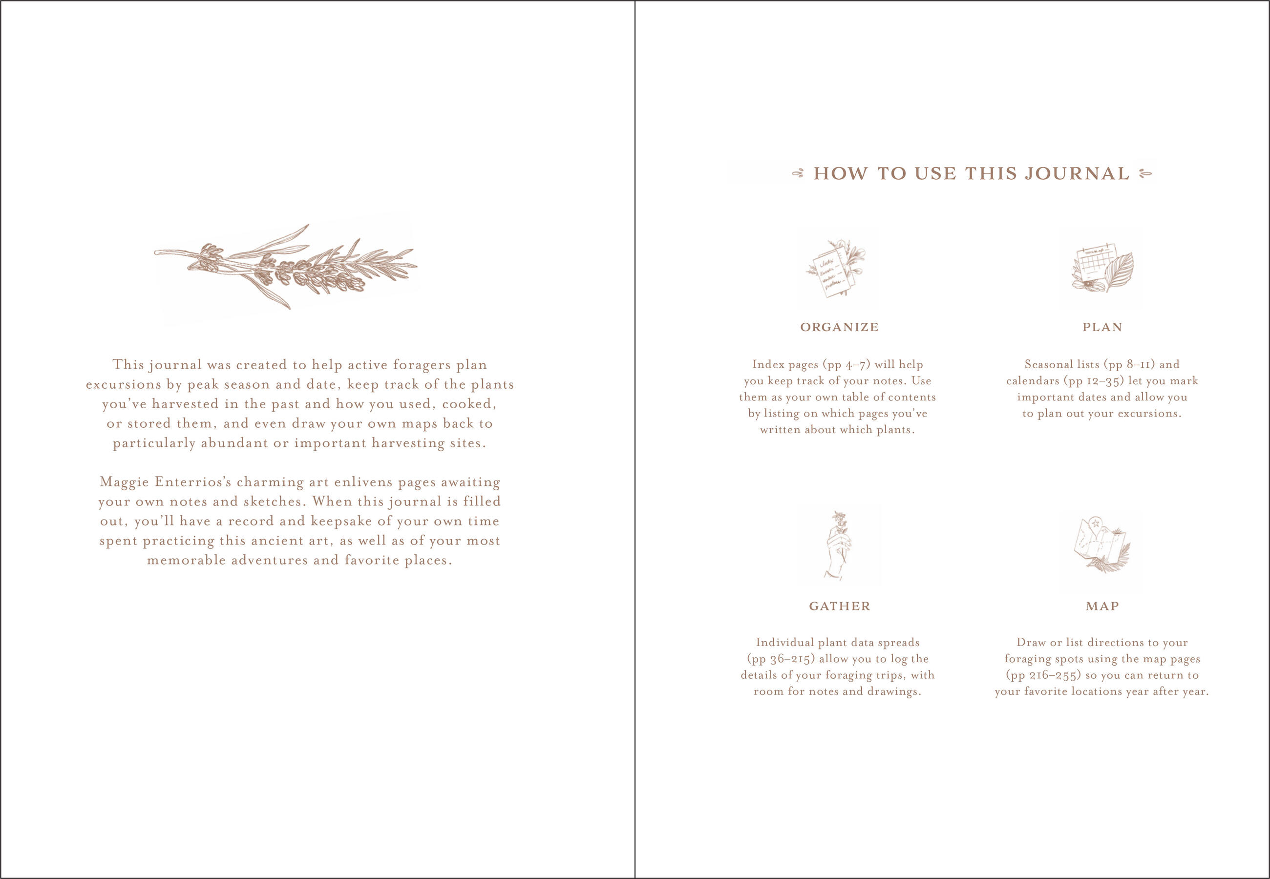 Whether you are a foodie looking for fiddleheads and ramps, a mushroom hunter seeking the elusive morel, or an herbalist searching for medicinal plants, bring Gather along on your next foraging expedition. You can write notes about the plants you have foraged for and how you used them, record where you found specific plants on fillable maps, and document harvest times on the blank calendar pages. When used in conjunction with your favorite trusted foraging guide, Gather is a trail-side companion that will make your time in nature more enjoyable and memorable. Filled with beautiful illustrations by Maggie Enterrios and featuring a ribbon marker and elastic enclosure, this beautiful journal is a must-have for foragers and nature lovers.