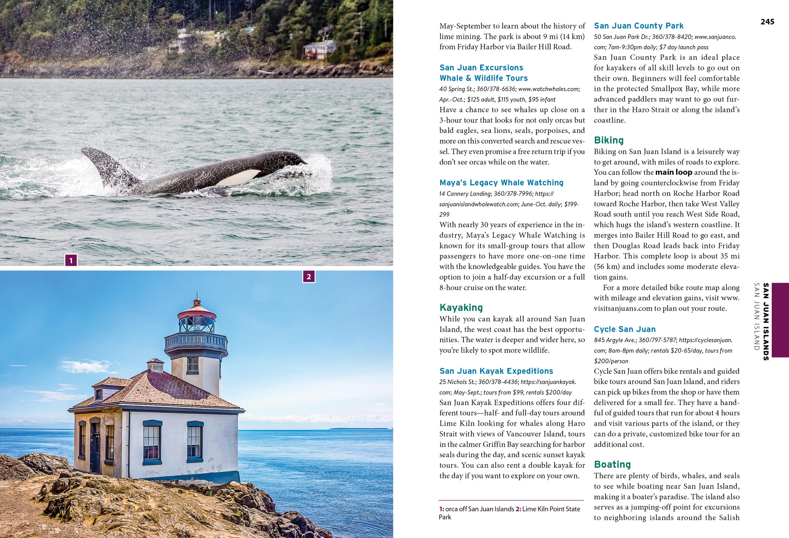 - Outdoor adventures: Hike through wildflower meadows in Mt. Rainier National Park, stroll through the lush Hoh Rainforest, and go sea kayaking in Friday Harbor. Take a whale watching trip, marvel at the varied landscapes of the North Cascades Scenic Byway, or bike along the Spokane River