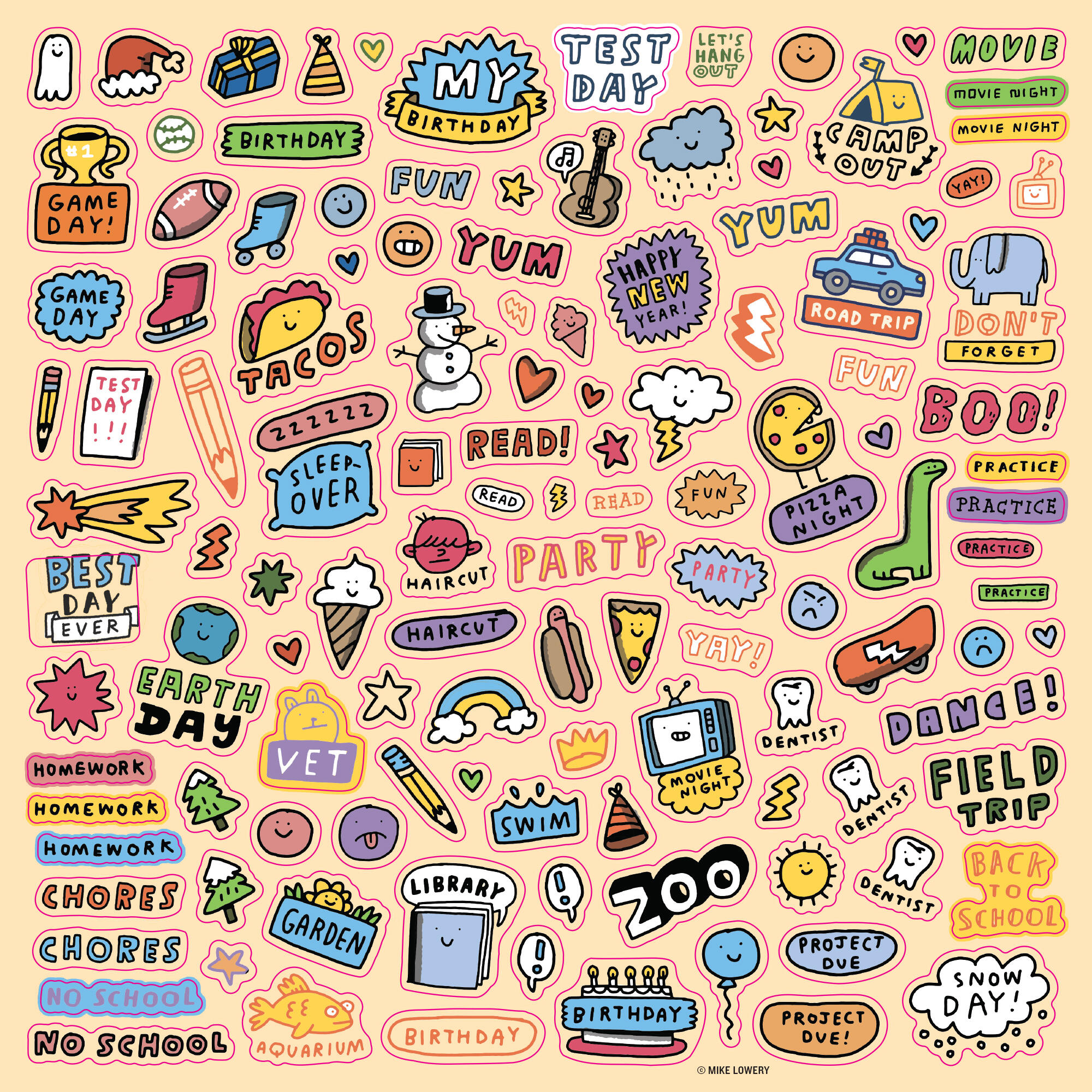 - PACKED WITH FUN—AND STICKERS!: Dress up snowpeople in January, solve a space maze in August, and complete an underwater word search in November! Plus 300 stickers for decorating and marking events, from vacations and birthdays to sick days and field trips.