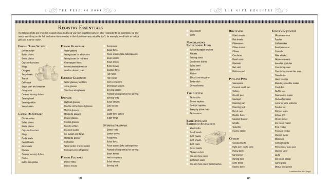 Packed throughout are tips, tools, checklists, spreadsheets, and schedules to help brides (and grooms) manage everything from building a wedding timeline and organizing the dreaded seating chart to getting the wedding party matched and fitted. From “Will you marry me?” to “I do,” nothing will slip through the cracks.