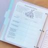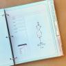 Created as a three-ring binder, it has tabs for each category: