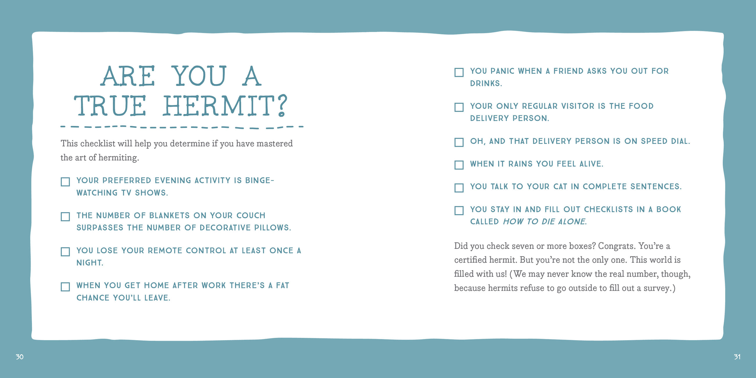 For every brave soul who wants to just say no—no to meeting the gang for drinks, no to wishing a coworker happy birthday (unless there’s free cake involved), and no to dating of any kind—here comes Blair, the master of living life in sweatpants and talking only to her cat. With her dark but totally honest perspective, Blair will teach you how to become an antisocial hermit, fail at your boring job, sabotage your relationship, and always—always—give yourself permission to choose the couch over the gym.