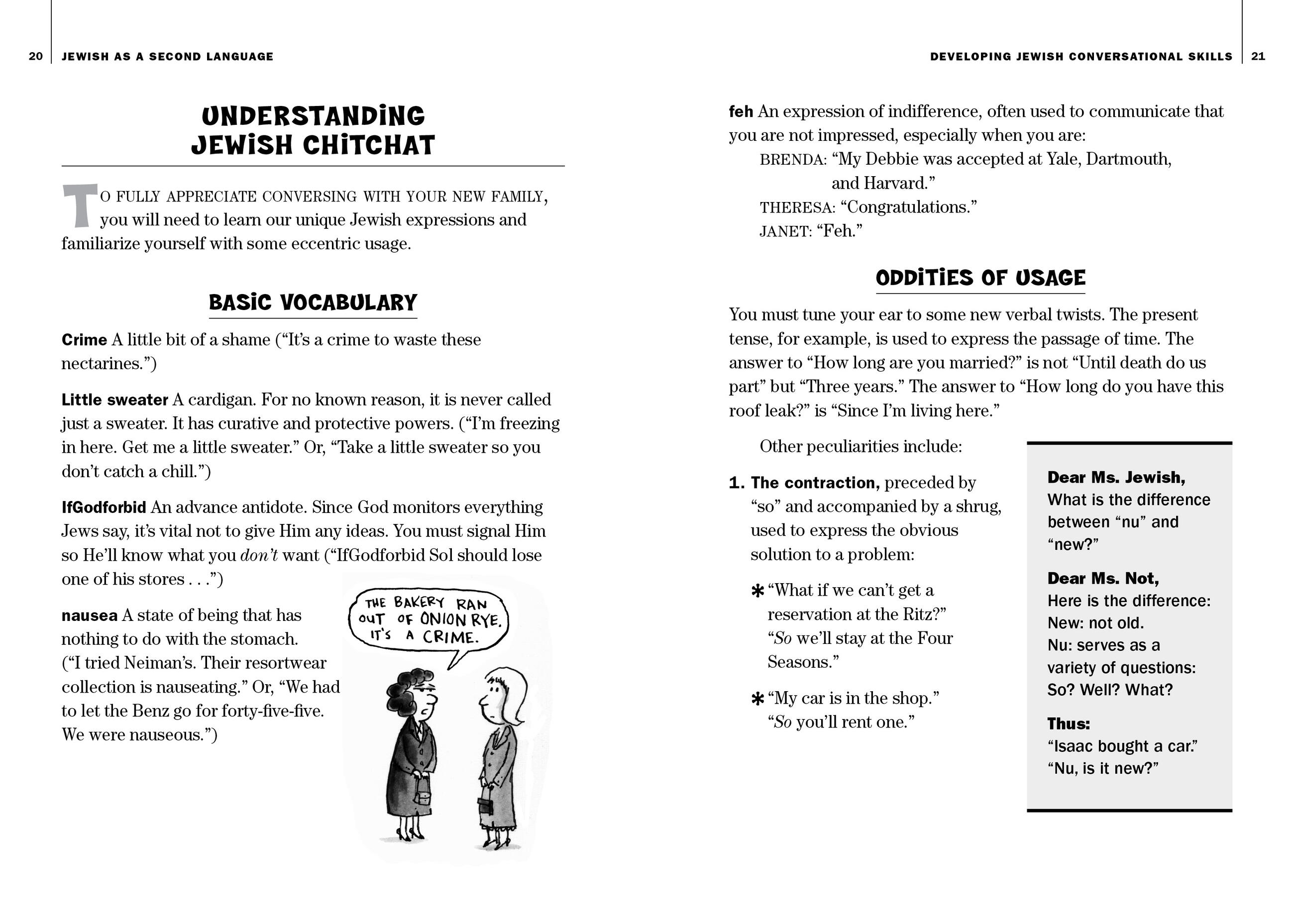 Forget Yiddish. Real Jewish is a secret language of nuance, argument, and somersaults of everyday speech; of wins, losses, and draws in competitions you had no idea you’d entered. It’s everything from mastering the OAQ (Obsessive Anal Question) – “They’ll de-ice the wings before we take off, right?” – to never, ever believing your mother-in-law when she says “Don’t bother driving me, I’ll take a cab.” Now in a second edition that’s bigger, better, and with more guilt, this is the indispensable guide.