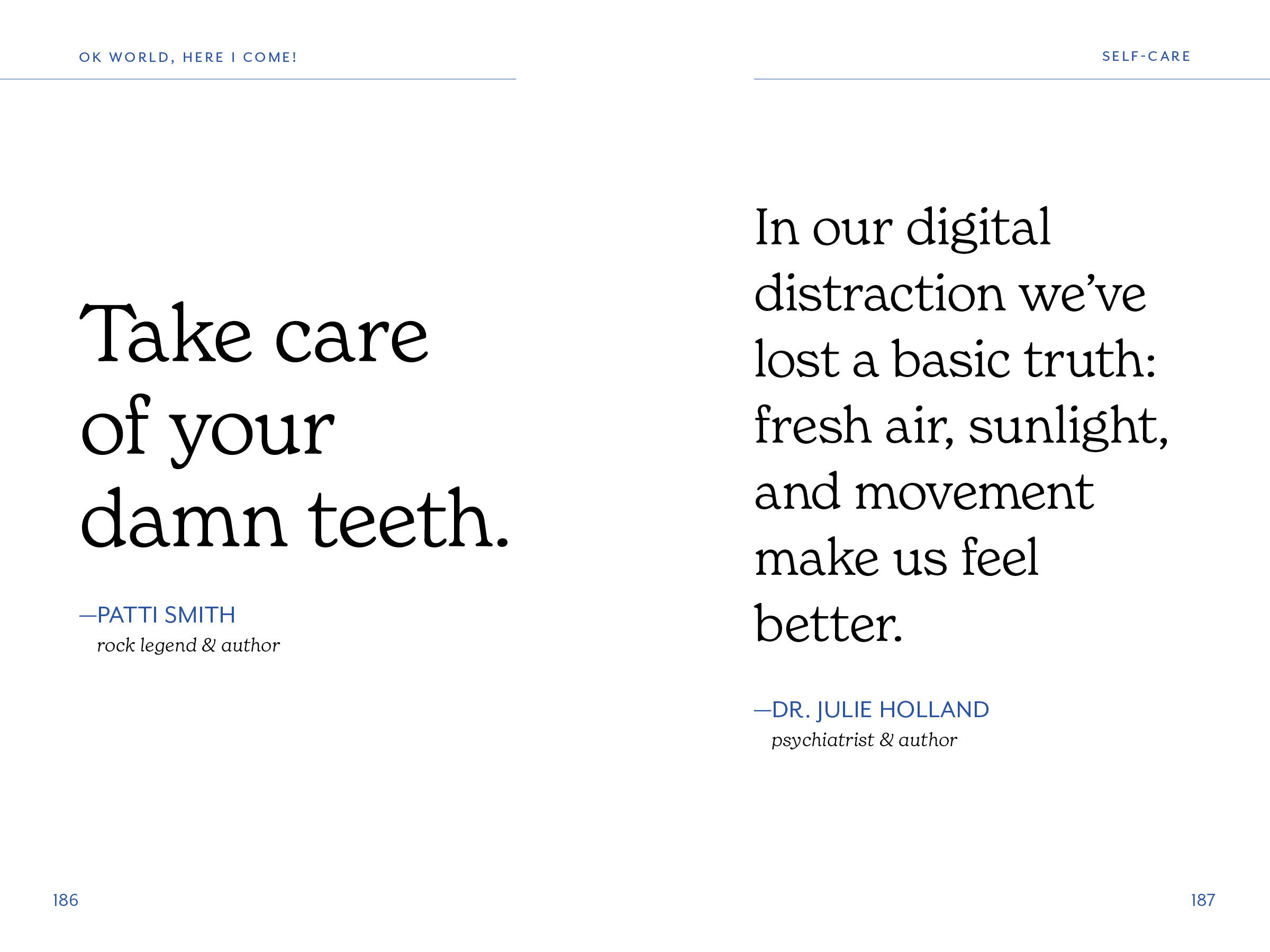 OK, World, Here I Come! is an invaluable book for graduates as they launch into the next chapter of life. Organized by themes such as Self-Care, Success & Failure, Work Ethic, and more, each quote is carefully selected to evoke confidence, motivation, and encouragement for the reader.