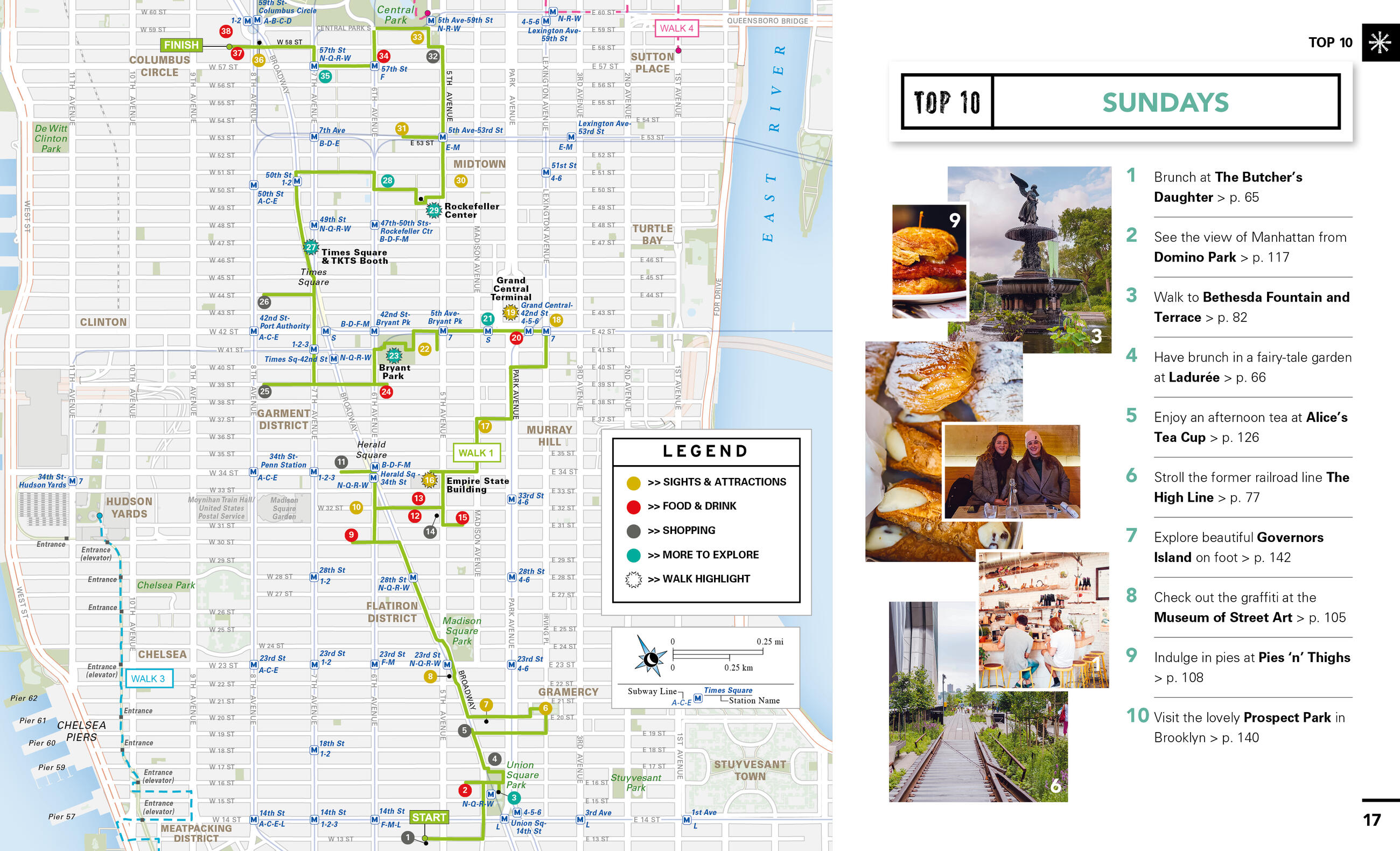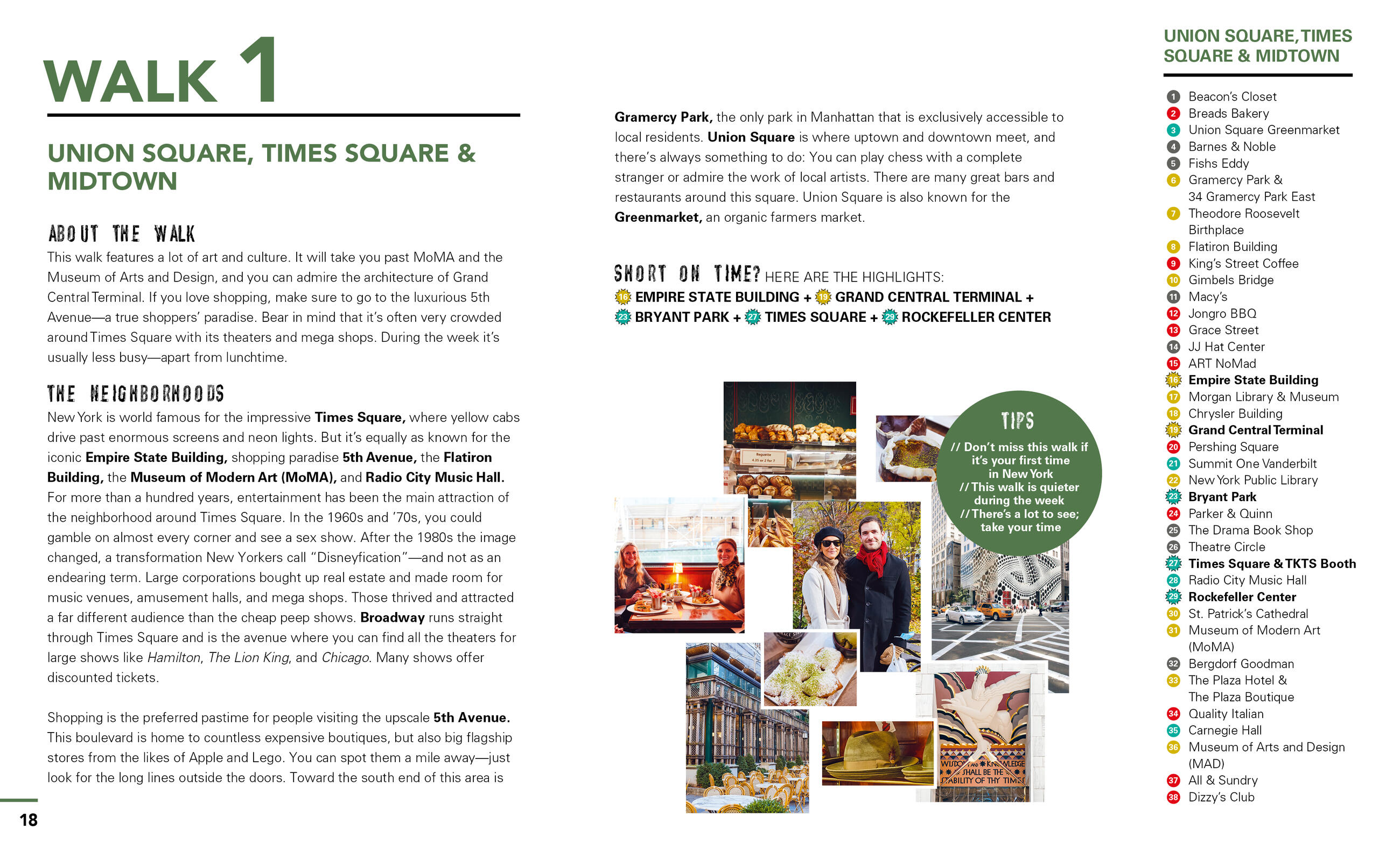 - Get to know the real New York on six customizable walks: Stroll past icons like the Flatiron Building, the Empire State Building, and Rockefeller Center, or learn more about the history of jazz and the Harlem Renaissance. Take in jaw-dropping views along the High Line, shop the trendiest brands in the Meatpacking District, and explore world-famous galleries and museums. Cross the Williamsburg Bridge, hit a flea market, and discover coffee shops tucked among the Brooklyn warehouses. Sample authentic Chinese noodles and dim sum, comforting soul food, and old-school deli standbys, or admire the city skyline from one of New York’s many rooftop bars