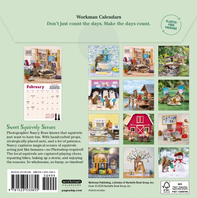 - IT’S A SQUIRREL’S WORLD: Each month features a precious photo of real squirrels playing chess, picnicking, and getting up to more fun with these amazing (not photoshopped!) photos from Nancy Rose.