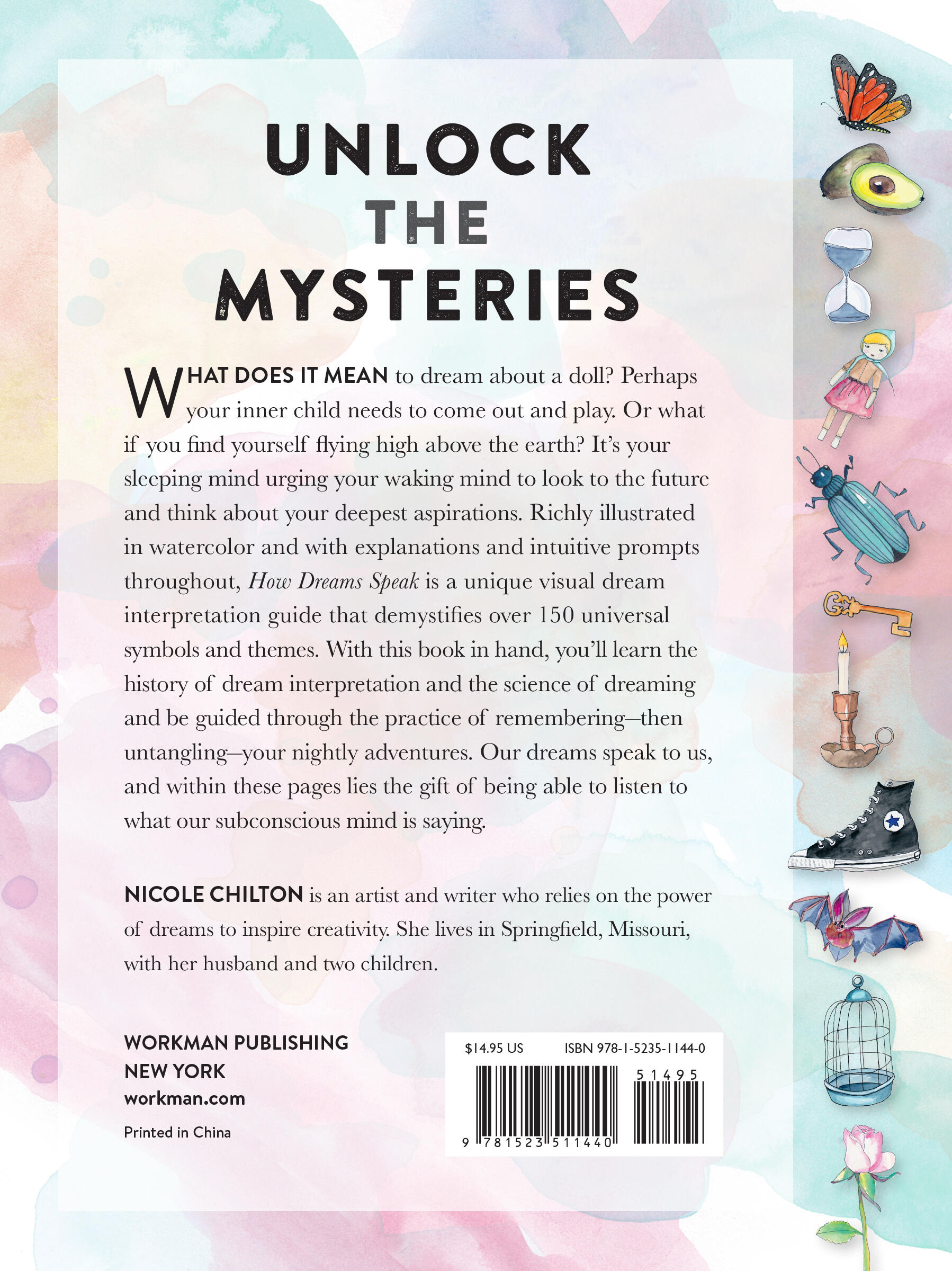 What does it mean to dream about a doll? Perhaps your inner child needs to come out and play. Or what if you find yourself flying high above the earth? It’s your sleeping mind urging your waking mind to look to the future and think about your deepest aspirations. Richly illustrated in watercolor and with explanations and intuitive prompts throughout, How Dreams Speak is a unique visual dream interpretation guide that demystifies over 150 universal symbols and themes. With this book in hand, you’ll learn the history of dream interpretation and the science of dreaming and be guided through the practice of remembering—then untangling—your nightly adventures. Our dreams speak to us, and within these pages lies the gifts of being able to listen to what our subconscious mind is saying.