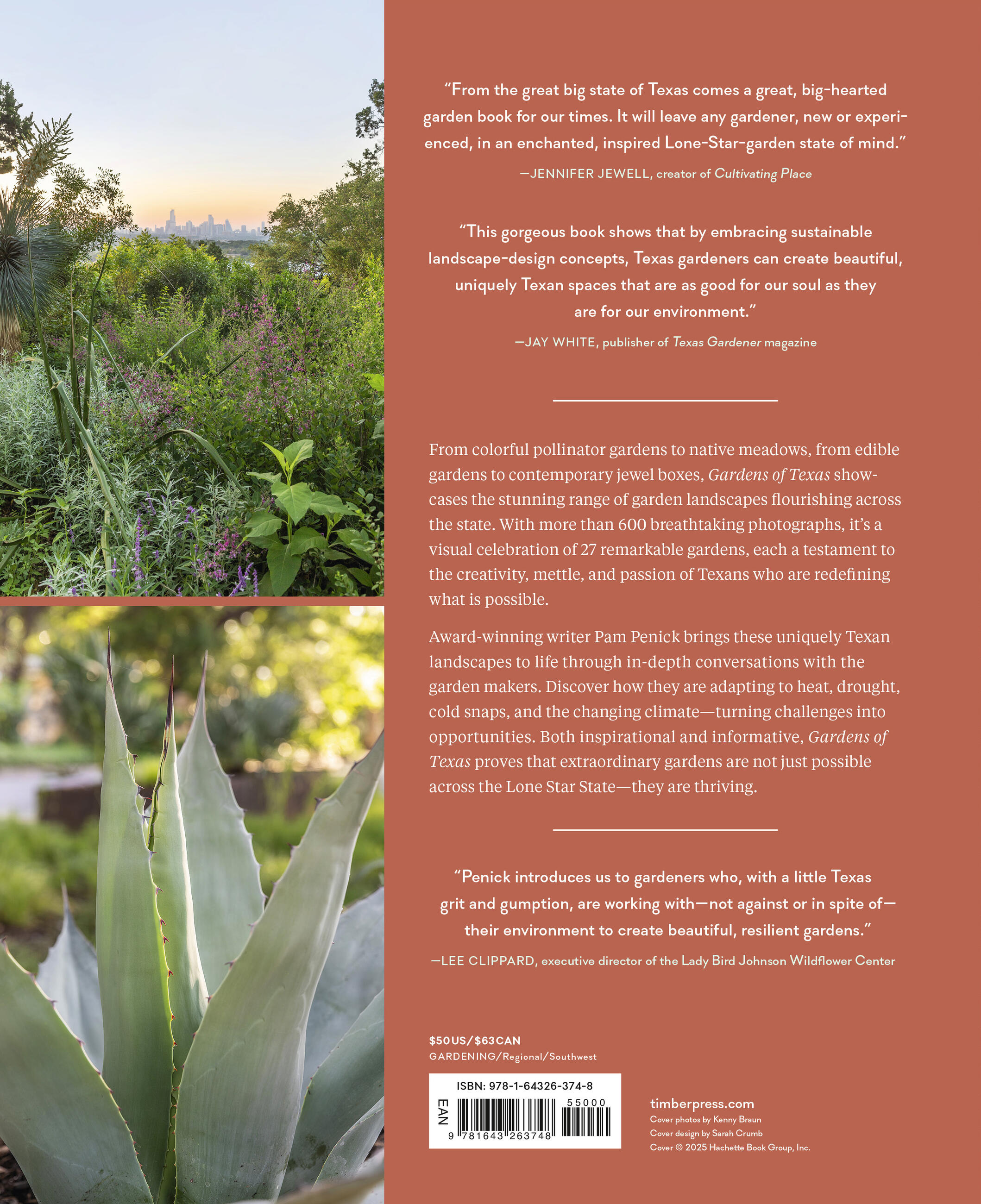 Gardens of Texas is a photo-rich exploration of gardens across this vast state, including conversations with the intrepid garden-makers who nurture them. Readers will learn how Texans are adapting to climate extremes through hardy plant choices, rainwater harvesting, native lawns, and other responsive design strategies. Popular gardening blogger and author Pam Penick takes readers on a tour of 27 vibrant Texas gardens and shares the owners’ innovative thinking and true-grit determination. With over 600 enchanting photographs plus plant recommendations and practical takeaways from every garden, Gardens of Texas offers gardeners empowerment and inspiration.
