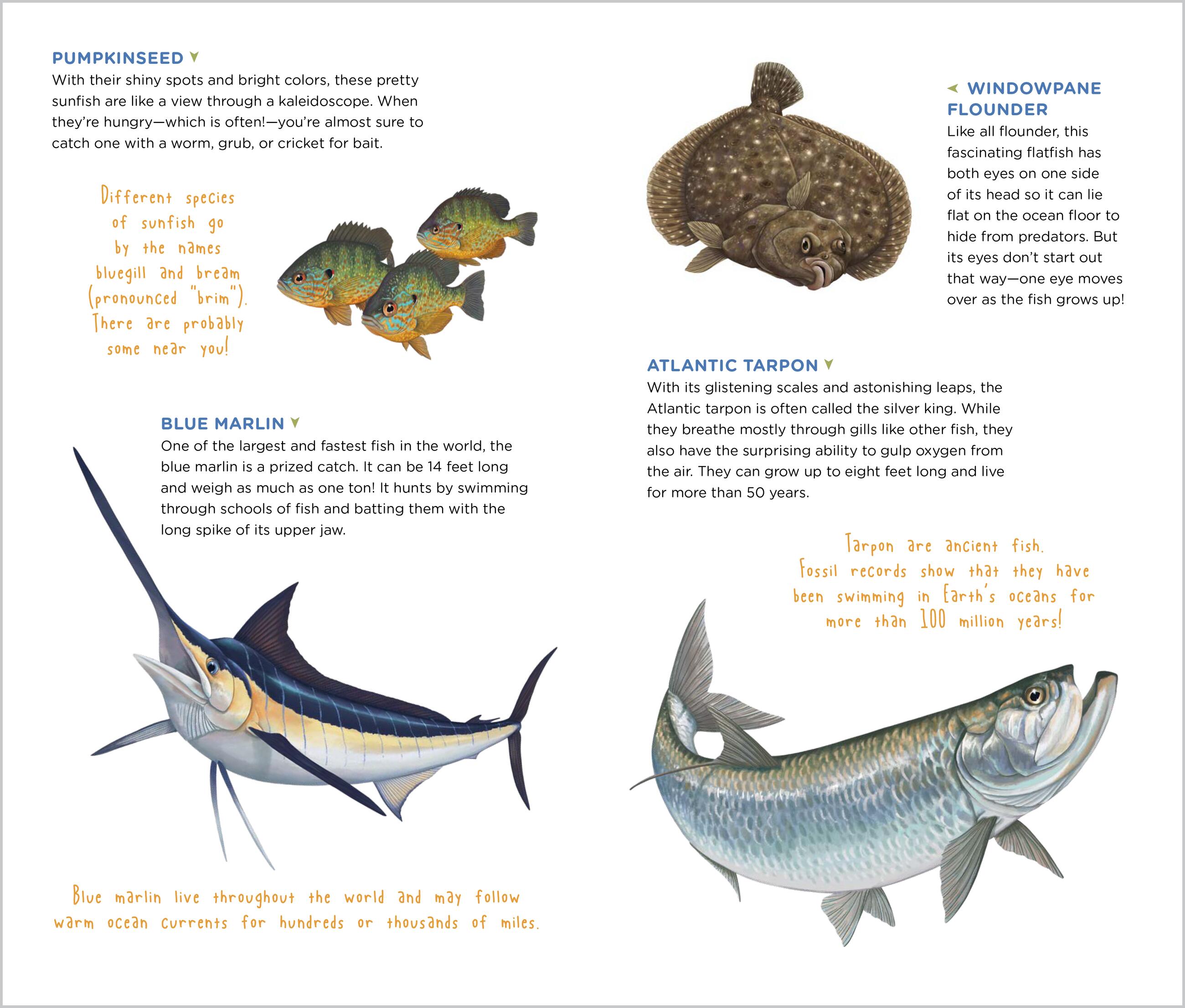Educational: Each tattoo is paired with a fun fact about fish, from trout to tuna and bluegill to barracuda.