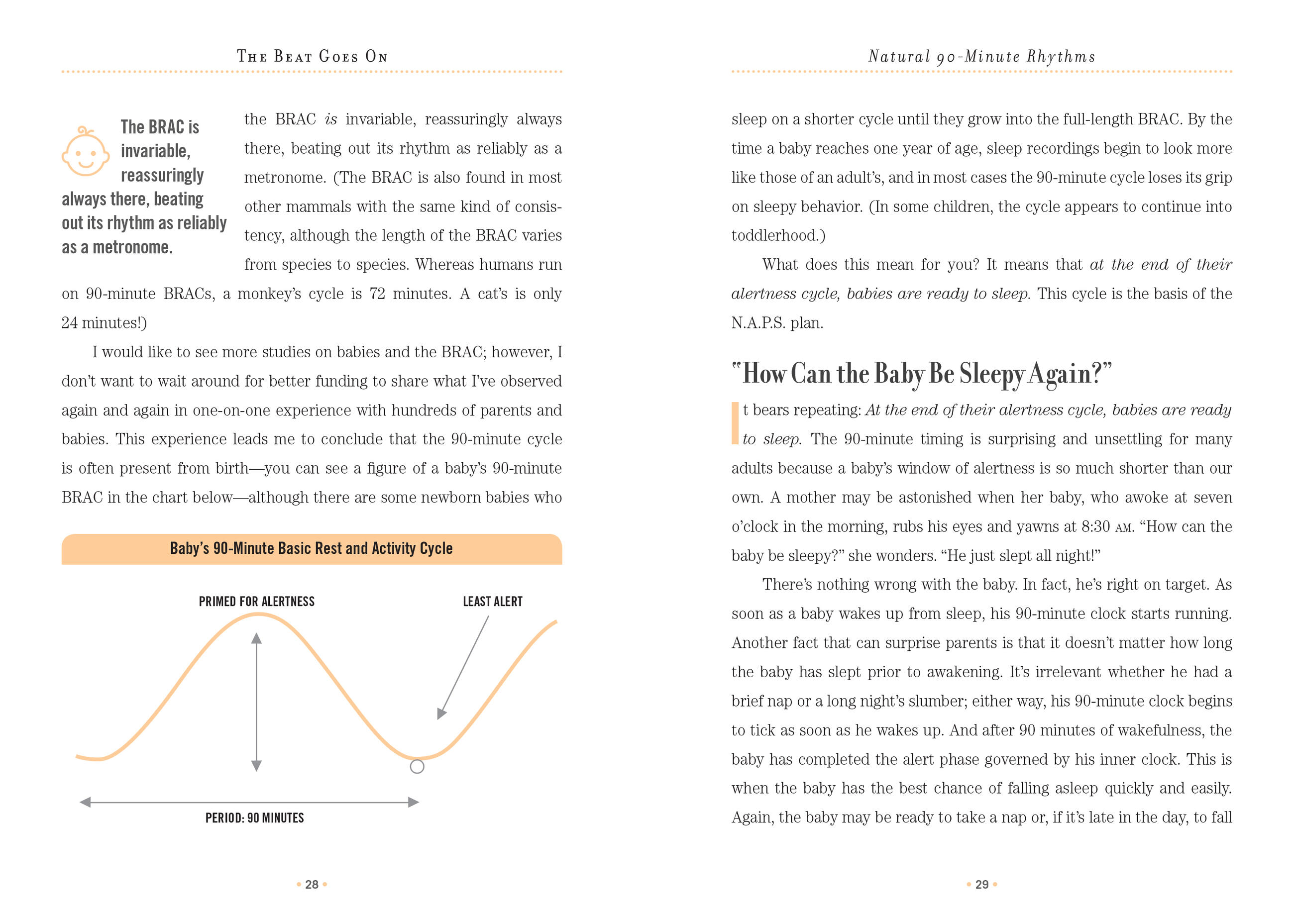 Based on the human rest and activity cycle that occurs every hour and a half, here’s a scientifically based program for parents to help babies get all the sleep they need, both through the night and during the day. The method is simple, foolproof, and yields long-lasting results: truly restful daytime naps (which also gives an infant a head start on cognitive development and emotional intelligence) and consistent nighttime sleep—as beneficial for parents as it is for the baby.