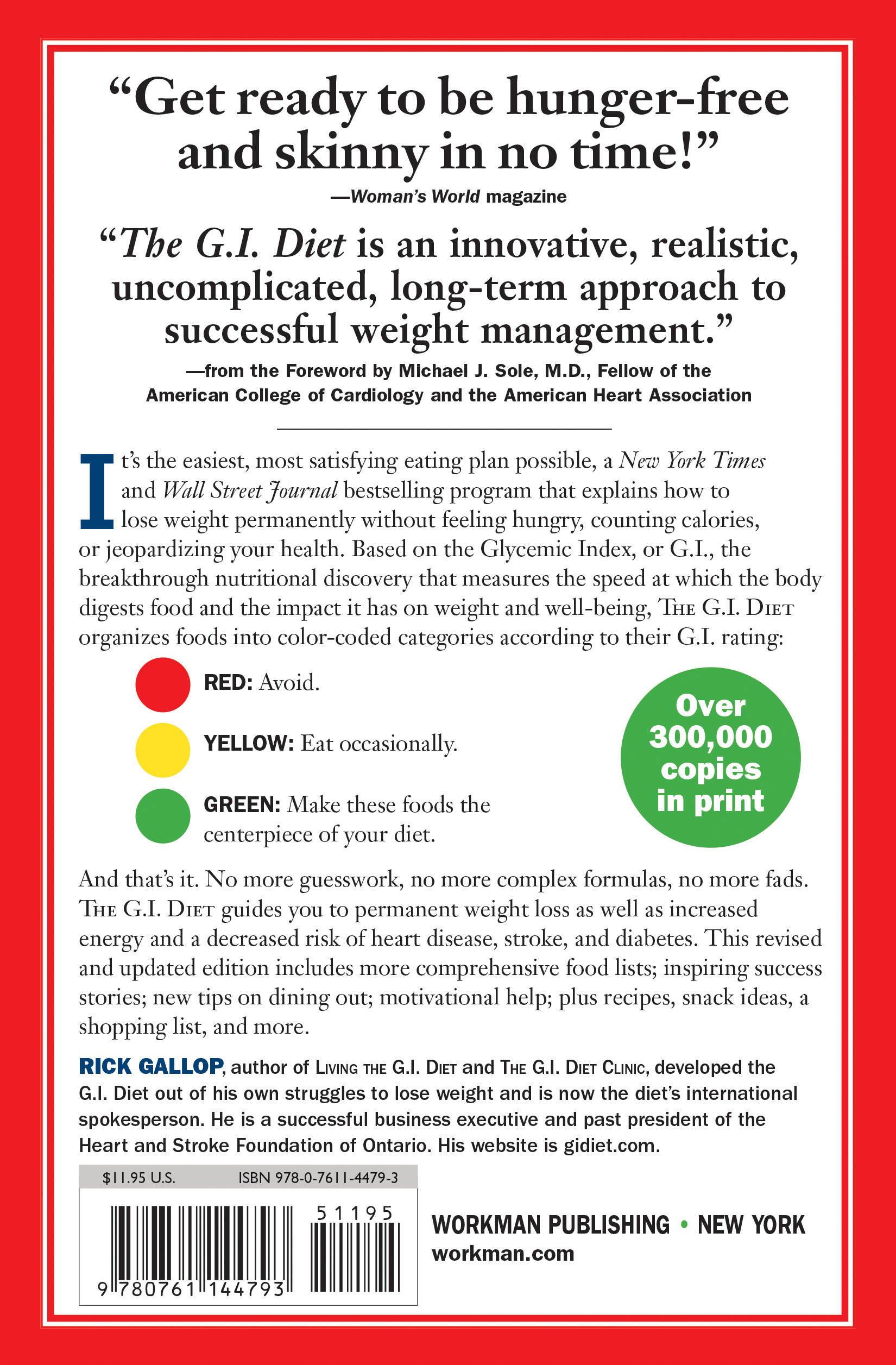 And that’s it. No more guesswork, no more formulas, no more fads. The G.I. Diet guides you to permanent weight loss as well as increased energy and a decreased risk of heart disease, stroke and diabetes. This revised and updated edition includes more comprehensive food lists; inspiring success stories; new tips on dining out; motivational help; plus recipes, snack ideas, a shopping list, and more.