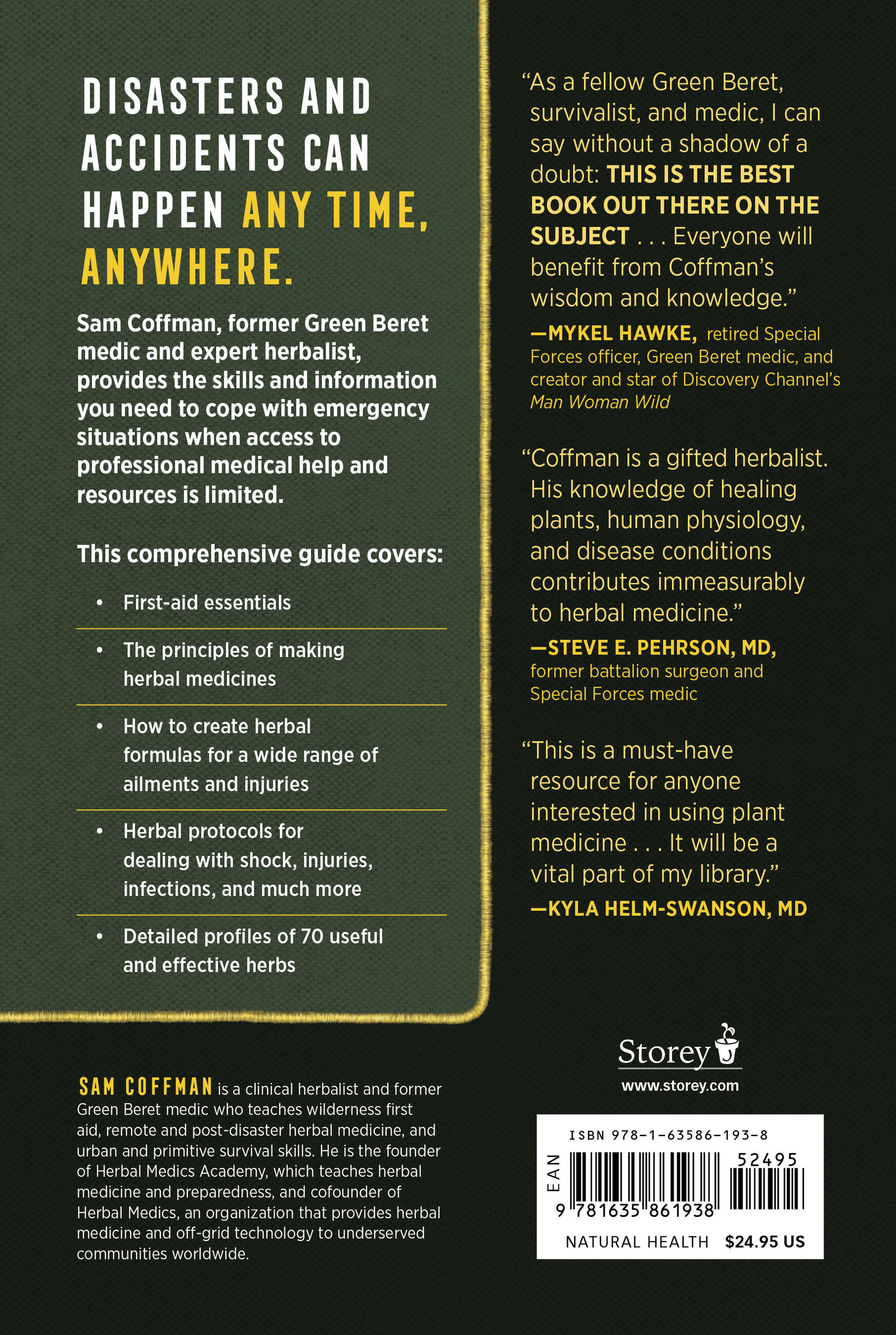 "As a fellow Green Beret, survivalist, and medic, I can say without a shadow of a doubt: THIS IS THE BEST BOOK OUT THERE ON THE SUBJECT... Everyone would benefit from Coffman’s wisdom and knowledge.” — Mykel Hawke, retired Special Forces Officer, Green Beret medic, and creator and star of Discovery Channel’s Man Woman Wild