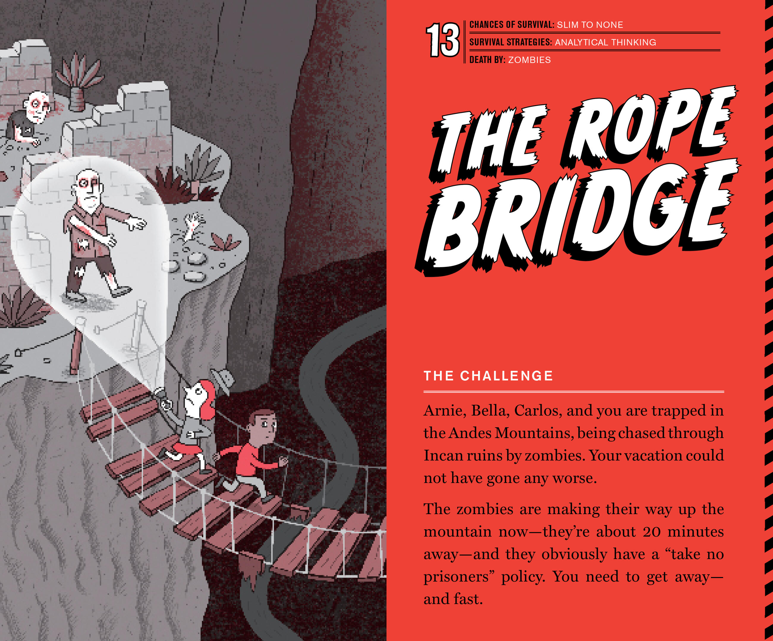 Math rocks! At least it does in the gifted hands of Sean Connolly, who blends middle school math with fantasy to create an exciting adventure in problem-solving. These word problems are perilous, do-or-die scenarios of blood-sucking vampires (How many months would it take a single vampire to completely take over a town of 500,000 people?), or a rowboat of 5 shipwrecked sailors with a single barrel of freshwater (How much can they drink, and for how long, before they go mad from thirst???). Each problem requires readers to dig deep into the tools they’re learning in school to figure out how to survive.