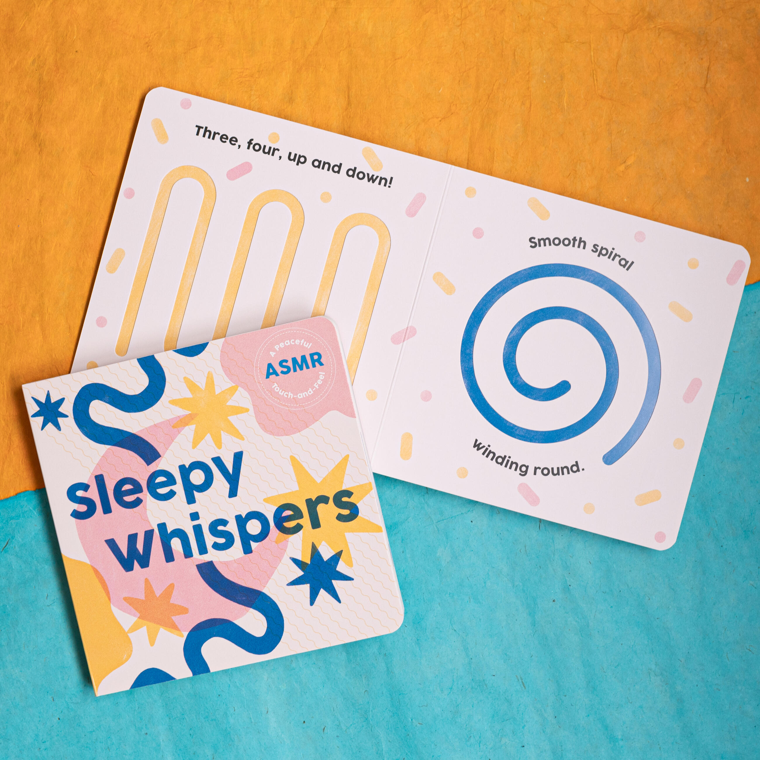 Sleepy Whispers is a tactile, soothing book designed to calm and relax. Every spread features high-quality textures that work with the text and illustrations to trigger an Autonomous Sensory Meridian Response. ASMR is a physical sensation of calm or euphoria, sometimes described as a gentle tingle, that promotes restful sleep, reduces anxiety, and also aids neurodiverse children in self-regulation. Featuring a calming text to whisper-aloud, a repetitive counting element, and an interactive design that encourages bonding between adult and child, this gentle book is the perfect addition to any peaceful bedtime routine.