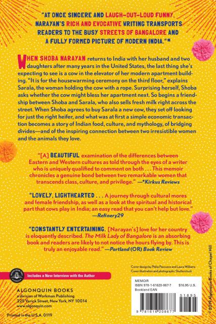 When Shoba Narayan—who has just returned to India with her husband and two daughters after years in the United States—asks whether said cow might bless her apartment next, it is the beginning of a beautiful friendship between our author and Sarala, who also sells fresh milk right across the street from that thoroughly modern apartment building. The two women connect over not only cows but also family, food, and life. When Shoba agrees to buy Sarala a new cow, they set off looking for just the right heifer, and what was at first a simple economic transaction becomes something much deeper, though never without a hint of slapstick.