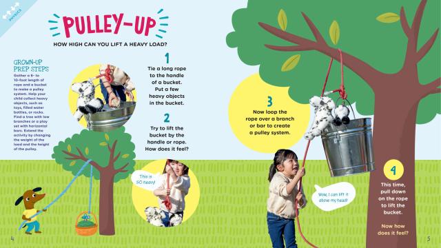 "With adult help, even preschoolers can explore science! These 20 projects serve as age-appropriate introductions to physics, earth science, chemistry, and biology. The directions are relatively simple, with few steps and clear results. A mix of photographs and illustrations showing diverse preschoolers allow the nonreading child to follow along step by step. Each project begins with “grown-up prep steps”: necessary materials, where to do the activity, and sometimes extension suggestions. The materials are easily available. Some projects, such as “Cereal Static” (demonstrating static electricity) or “Pulley-Up” (using a simple machine to lift a load) can be done in a short period; others, such as growing seeds or exchanging weather information with someone who lives in another climate, might be long-term. A beginning bird-watching activity could introduce long-running citizen science projects. The last few pages, for older helpers, detail the concepts explored through each activity. What’s most intriguing about this collection is the direct connection to the scientific method, explained to children at the beginning as asking questions, guessing answers, trying something out, seeing what happens, and pondering the results. With this introduction and some help with record-keeping (charts and graphs are among the illustrations), youngsters will develop good science habits while they are learning. A well-thought-out addition to the science activities shelf."Kirkus